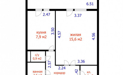 Рациональная планировка, площадь 54,49 м. кв. Квартира расположена на 2 этаже из 9. Жилая площадь - 34,46 м. кв. Комната 17,49 м. кв. и 16,97 м. кв. Площадь кухни 9,65 м. кв., прихожая – 6,52 м. кв. Достаточно мес…