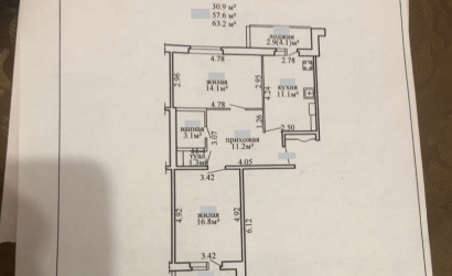 2-комнатная, 62.7/30.8/11.2 м2, Этаж 7 из 10, 2011 г.