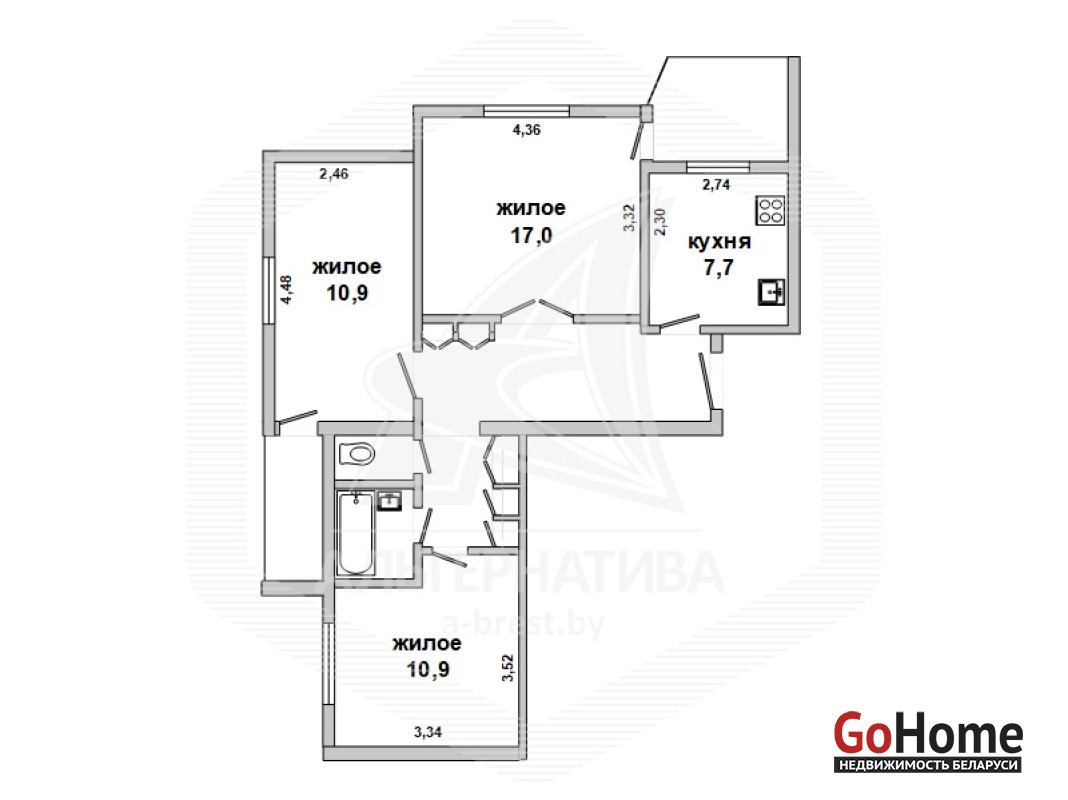 3-комнатная квартира, г. Брест, ул. Янки Купалы, 1984 г.п., 3 / 5 кирпич, 65,8 / 62,1 / 38,8 / 7,7, санузел раздельный, две лоджии, подвал, деревянные межкомнатные двери, входная дверь деревянная, потолки - снежка (2,56 м), полы - ДСП, ламинат (в одной комнате) и линолеум (в кухне), стены оштукатурены (в одной комнате) и оклеены обоями, телефон, домофон. Квартира в жилом состоянии. Лот - 241890