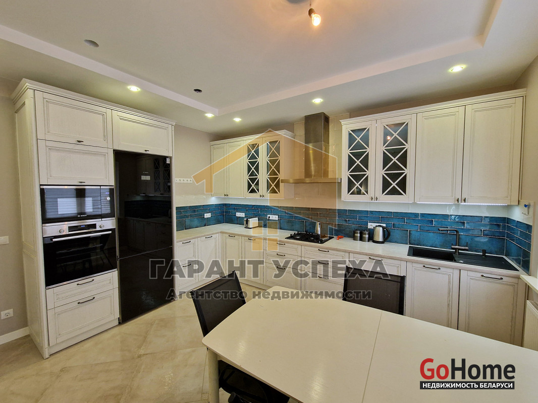 В кухне есть смежное помещение кладовой. Дорогой новый кухонный гарнитур с фасадами из массива с идеальным сочетанием цветов.