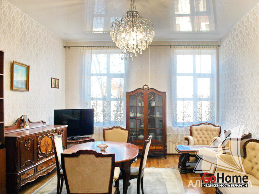 2-комнатная квартира, г. Брест, ул. Советская, до 1917 г.п., 3 / 3 панель, 75,8 / 75,8 / 46,7 / 13,7, санузел совмещенный, стеклопакеты, входная дверь металлическая, натяжные потолки (3,67 м), полы - паркет, стены оклеены обоями (Италия), в санузле современная плитка, заменена сантехника, заменен полотенцесушитель, газовая колонка (в санузле), душевая кабина. Кухонный гарнитур, газовая плита, холодильник, два телевизора, стиральная машина, шкаф-купе, люстры, диван, кресла, стол, стулья, комоды, кровать, шкаф (в спальне), комод с зеркалом. Квартира с хорошим ремонтом. Квартира расположена на две стороны. Есть своя закрытая территория, установлены ворота. Бонусом идет сарай на улице. Дом расположен на красивейшей улице города Бреста. Рядом вокзал, парк, магазины, рынок. Лот - 241357
