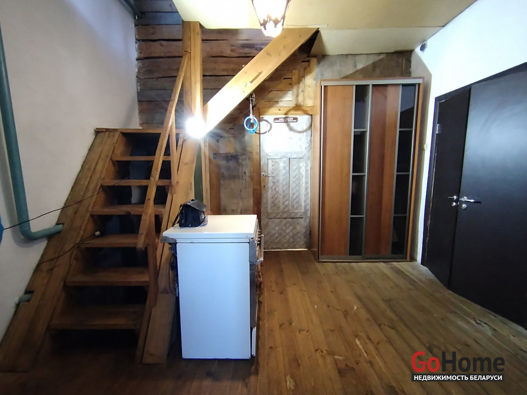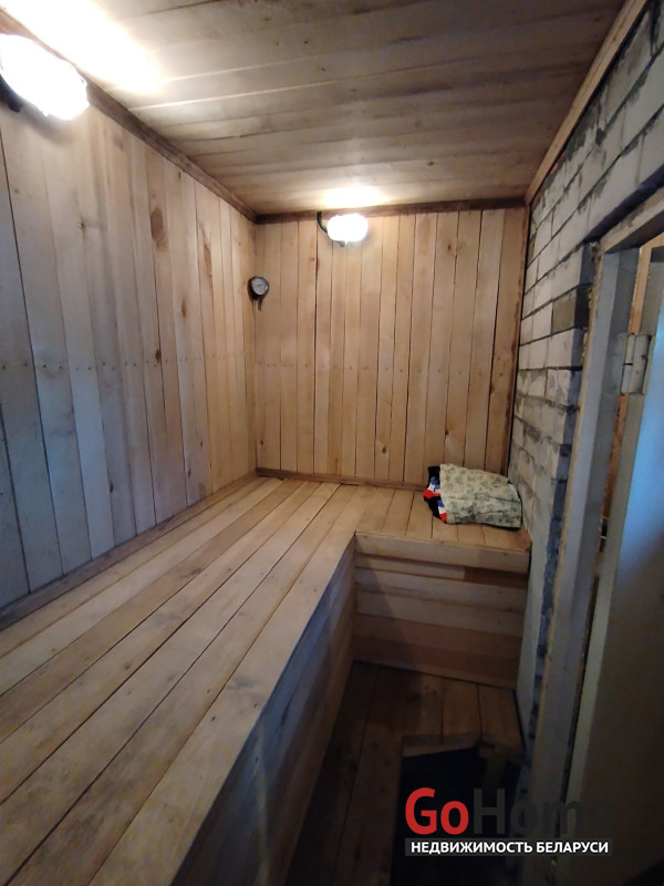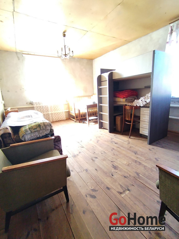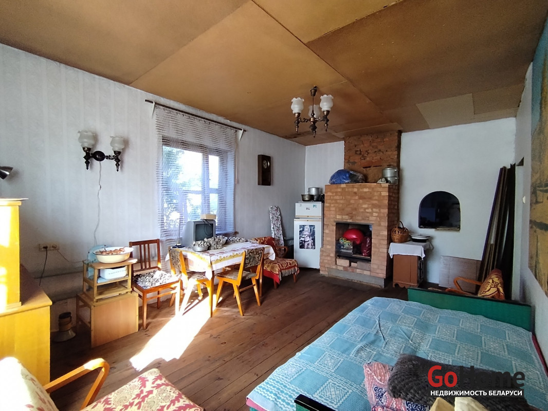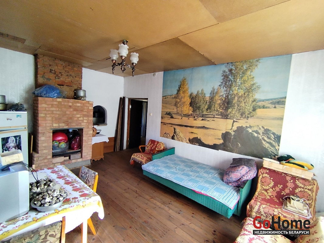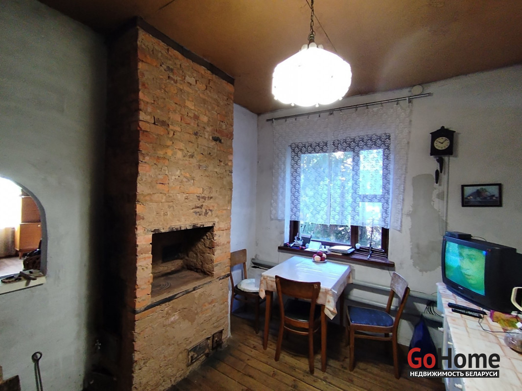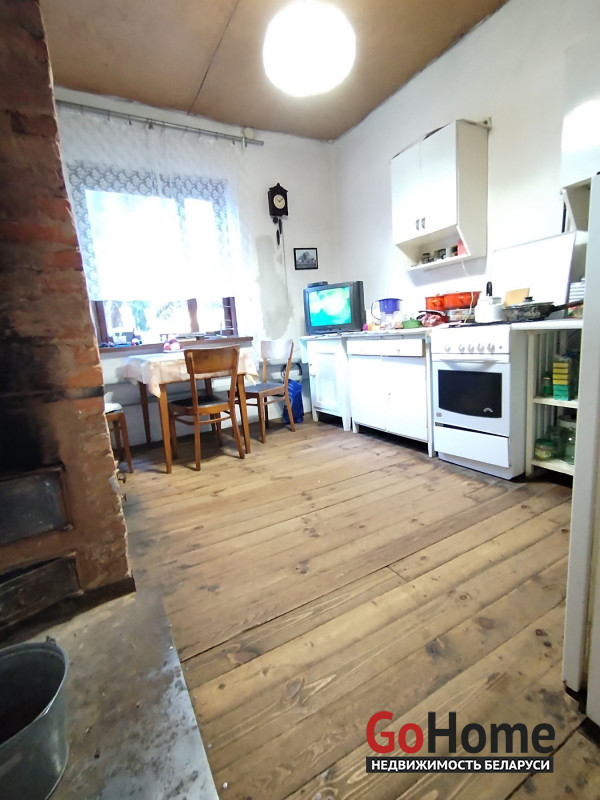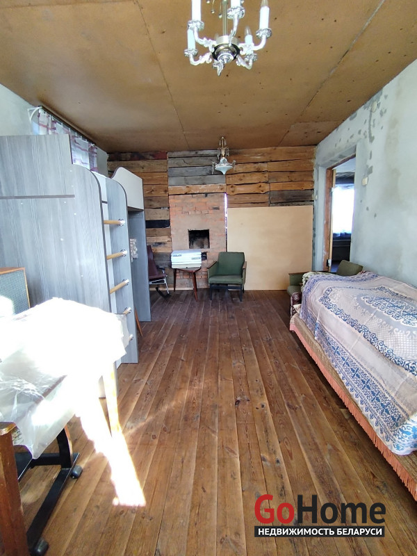 На первом этаже гостиная 21,1м2 с камином, кухня 11,2м2, жилая комната 13,8м2. Высокие потолки 3м. Также находится совместный санузел и котельная. Есть действующая печь.