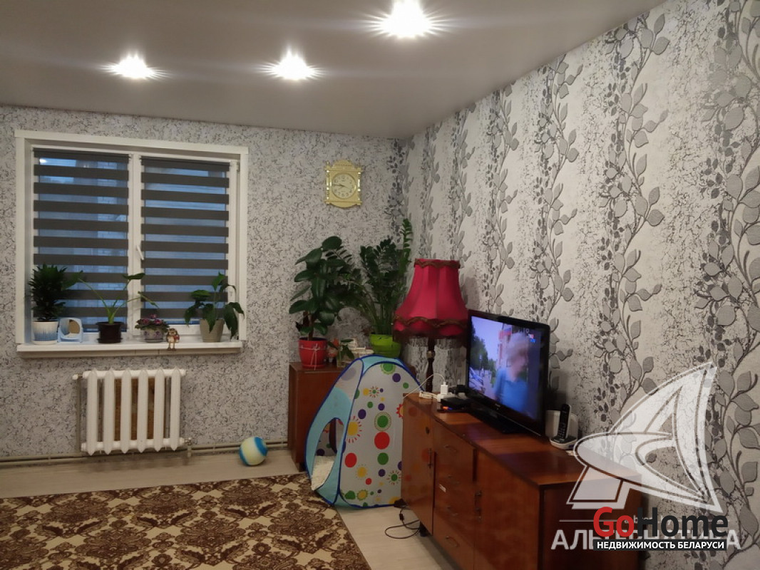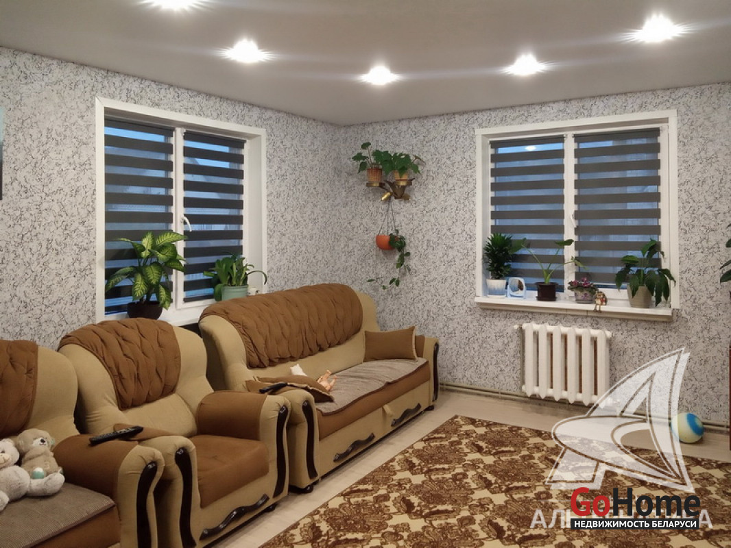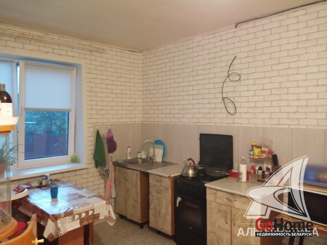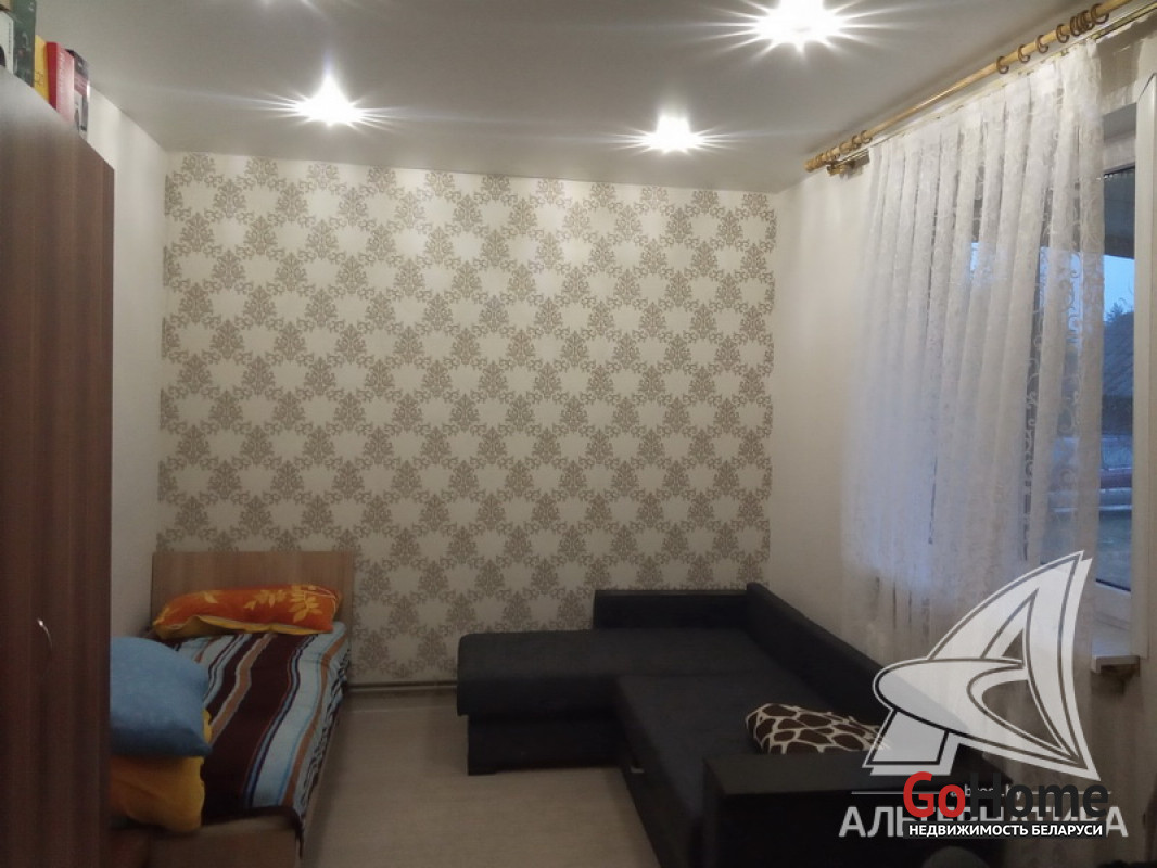 Квартира в блокированном жилом доме в Жабинковском р-не. 1986 г.п. 1 этаж. Общ.СНБ - 98,6 кв.м, общ.- 80,1 кв.м, жил.- 50,2 кв.м, кух.- 10,9 кв.м. 3 комнаты, высота потолка - 2,50 м.