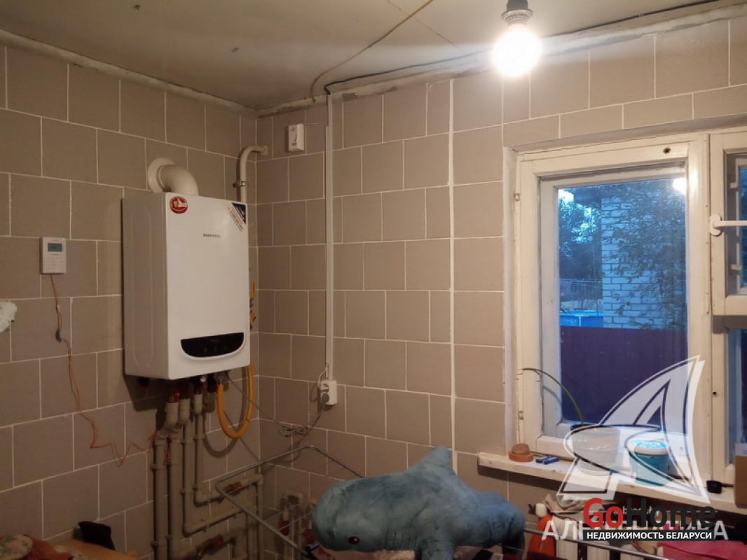 Коммуникации: отопление - газовый котел, газ - централизованный (в доме), водоснабжение - централизованный водопровод, электричество - централизованное, канализация - автономная.