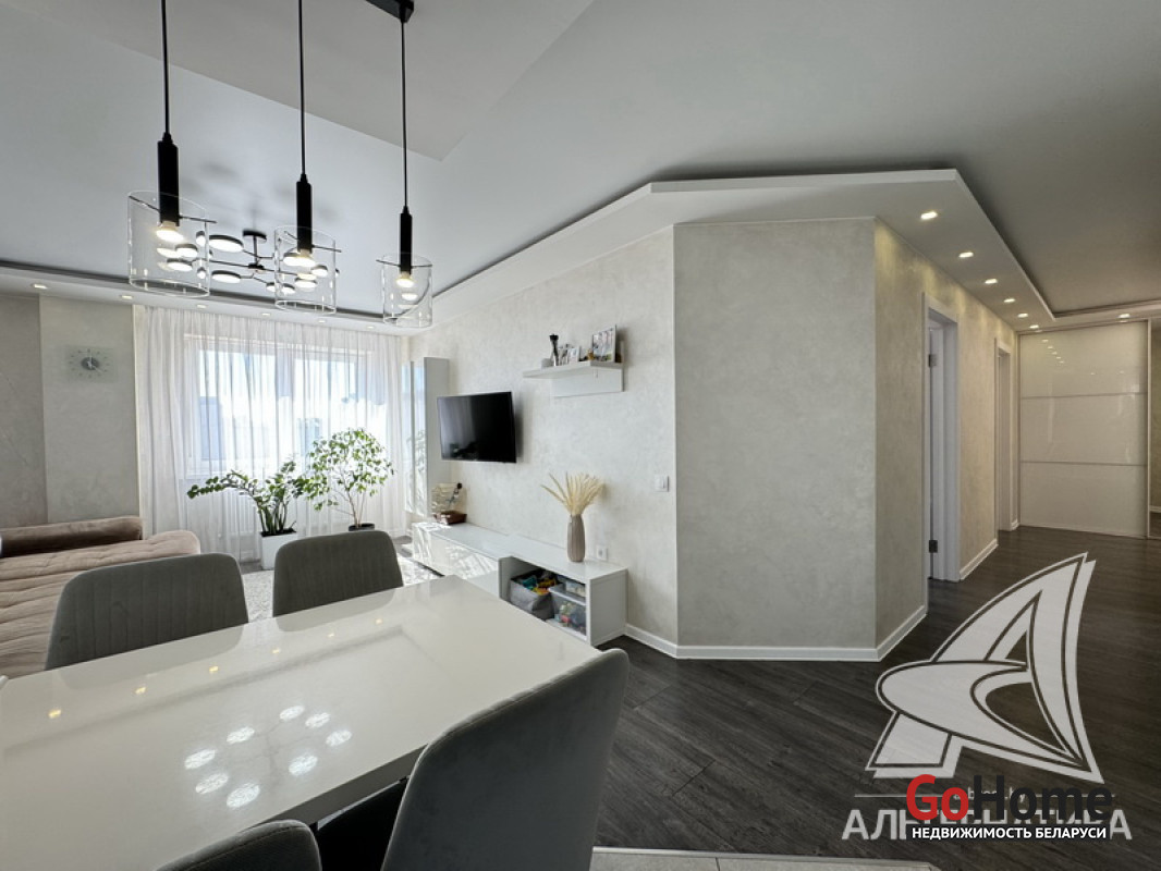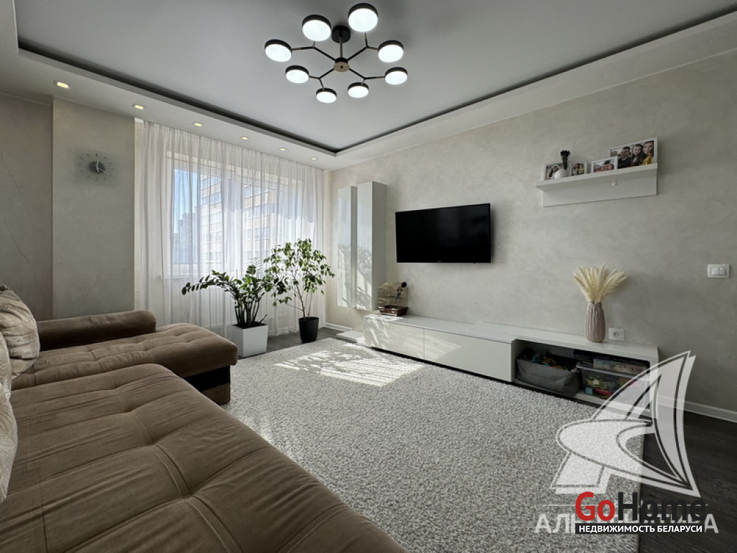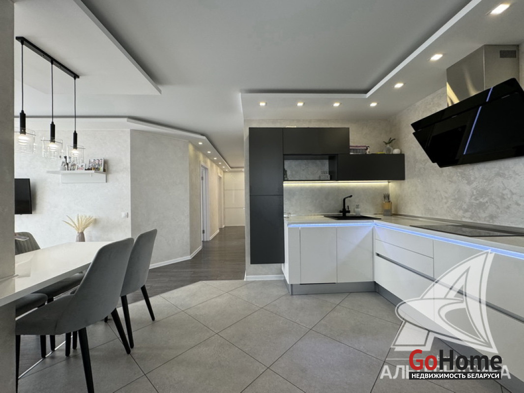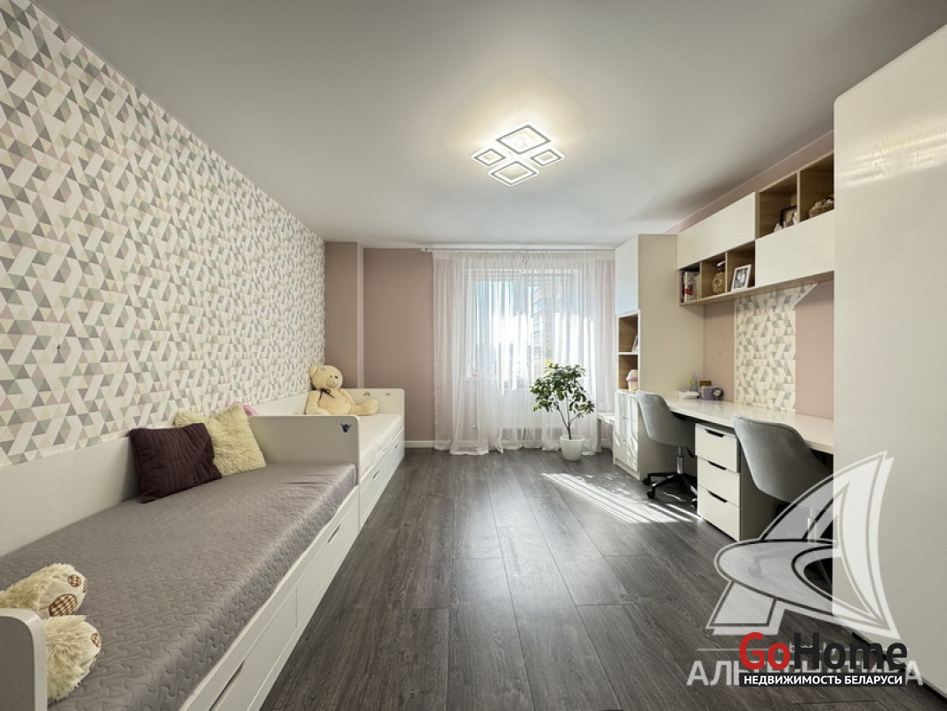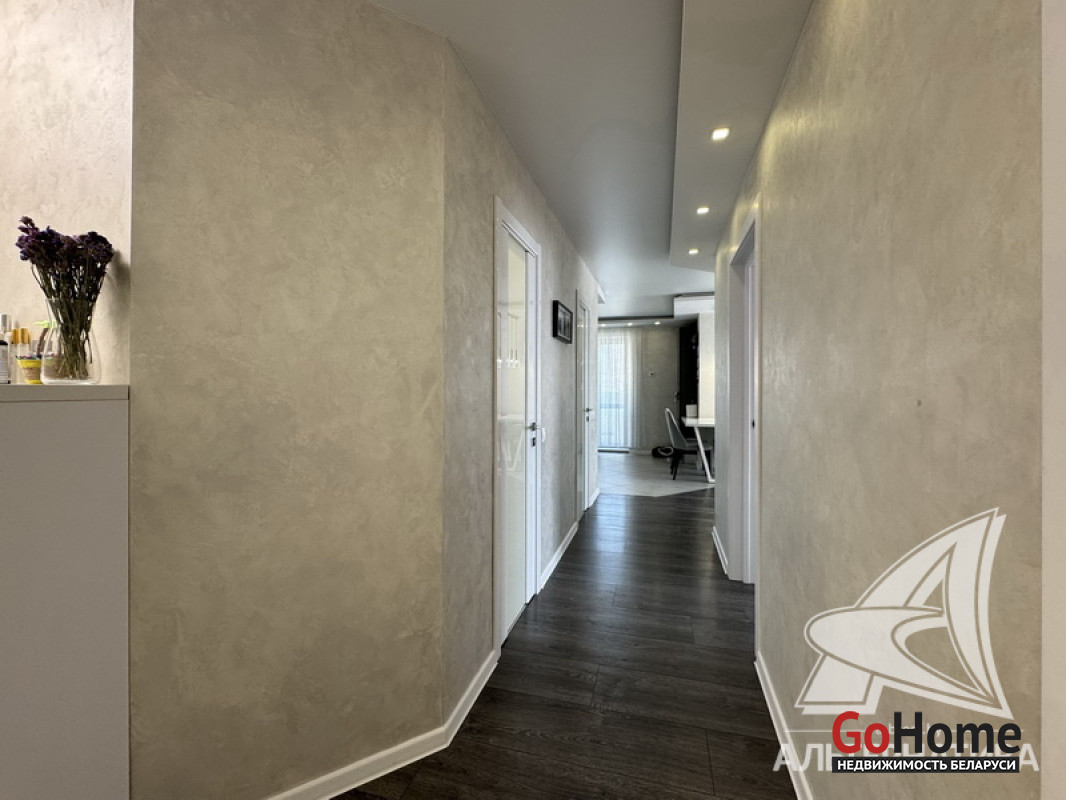 3-комнатная квартира, г. Брест, ул. Краснознаменная, 2015 г.п., 5 / 17 ж/б каркас, 86,0 / 80,5 / 46,9 / 13,4, санузел раздельный, балкон застеклен, стеклопакеты, межкомнатные двери - экошпон, входная дверь металлическая, потолки подвесные из гипсокартона, многоуровневые, с разноплановой системой освещения и натяжной сатин (2,51 м), подогрев пола (в кухне), стены оклеены обоями (в спальне, в детской) и отделаны декоративной штукатуркой, заменен полотенцесушитель, акриловая ванна, инсталляция, импортная плитка и сантехника, система видеонаблюдения, домофон. Кухонный гарнитур, вытяжка, шкаф-купе (в прихожей), прихожая, шкаф (на балконе), тумба под телевизор. Квартира с индивидуальными дизайнерскими решениями. Чистый подъезд. Имеется закрытое место для хранения колясок и велосипедов. Дом оборудован пандусом. Во дворе игровая детская площадка, парковка для автомобилей. Пассажирский и грузовой лифты. Лот - 241993