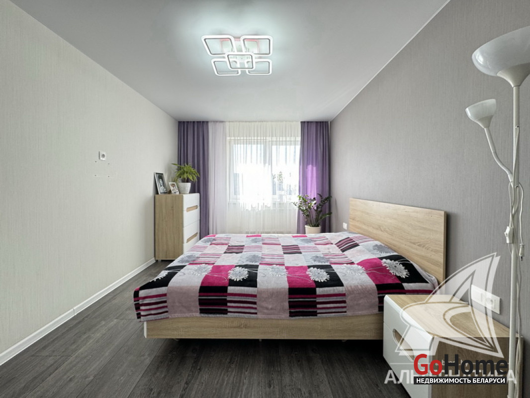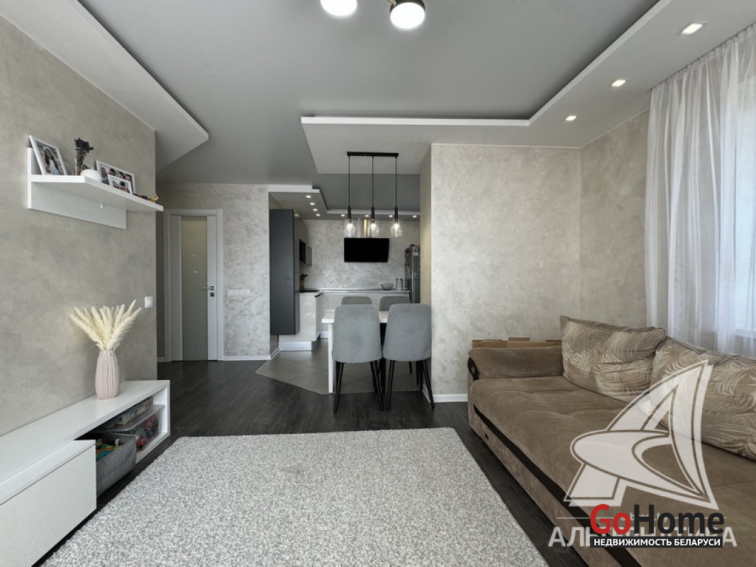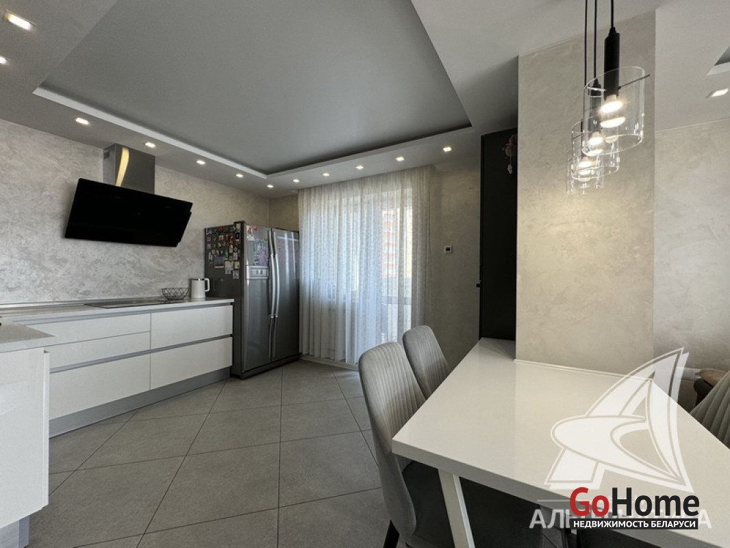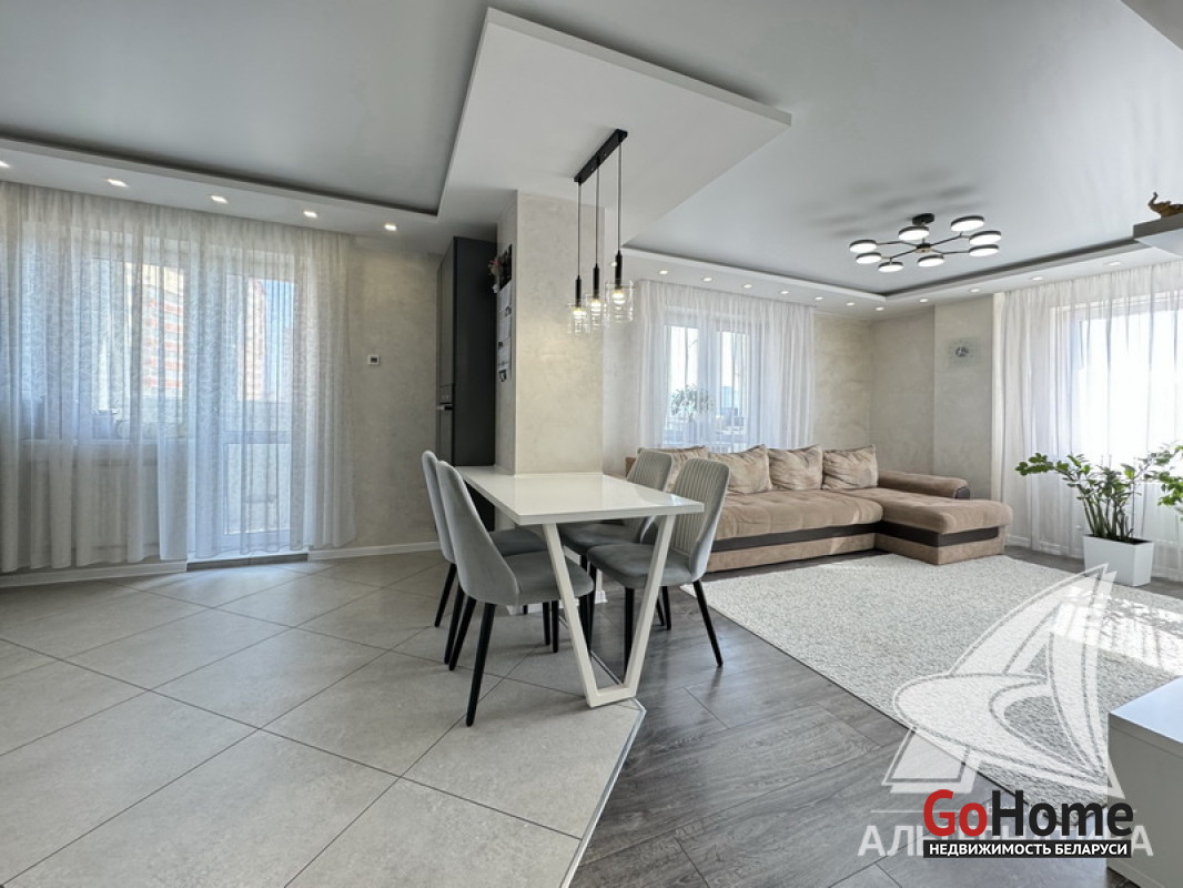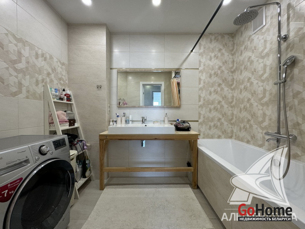 3-комнатная квартира, г. Брест, ул. Краснознаменная, 2015 г.п., 5 / 17 ж/б каркас, 86,0 / 80,5 / 46,9 / 13,4, санузел раздельный, балкон застеклен, стеклопакеты, межкомнатные двери - экошпон, входная дверь металлическая, потолки подвесные из гипсокартона, многоуровневые, с разноплановой системой освещения и натяжной сатин (2,51 м), подогрев пола (в кухне), стены оклеены обоями (в спальне, в детской) и отделаны декоративной штукатуркой, заменен полотенцесушитель, акриловая ванна, инсталляция, импортная плитка и сантехника, система видеонаблюдения, домофон. Кухонный гарнитур, вытяжка, шкаф-купе (в прихожей), прихожая, шкаф (на балконе), тумба под телевизор. Квартира с индивидуальными дизайнерскими решениями. Чистый подъезд. Имеется закрытое место для хранения колясок и велосипедов. Дом оборудован пандусом. Во дворе игровая детская площадка, парковка для автомобилей. Пассажирский и грузовой лифты. Лот - 241993