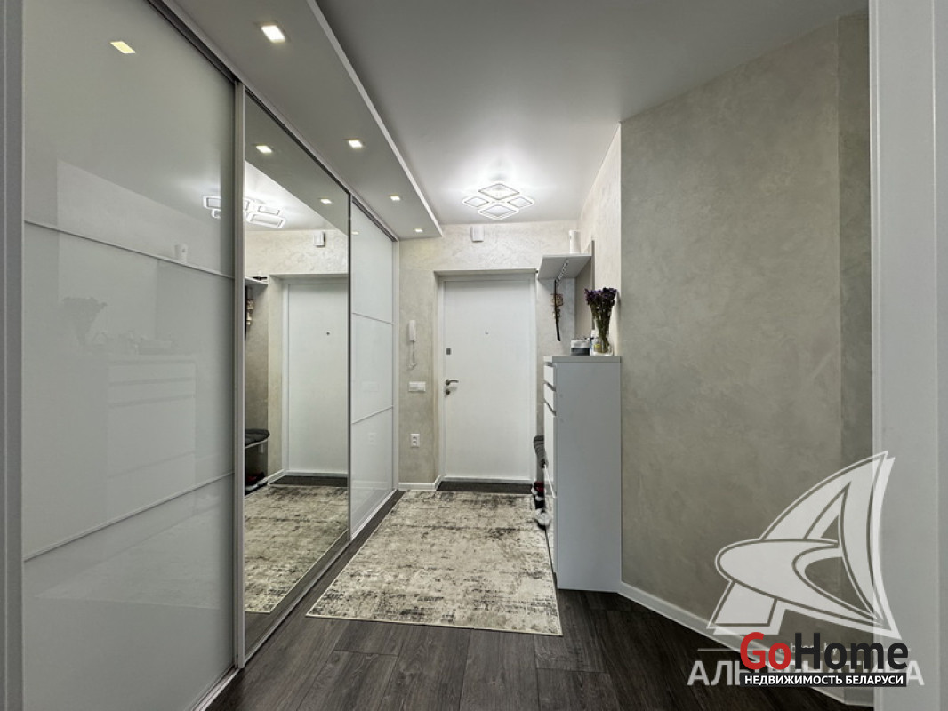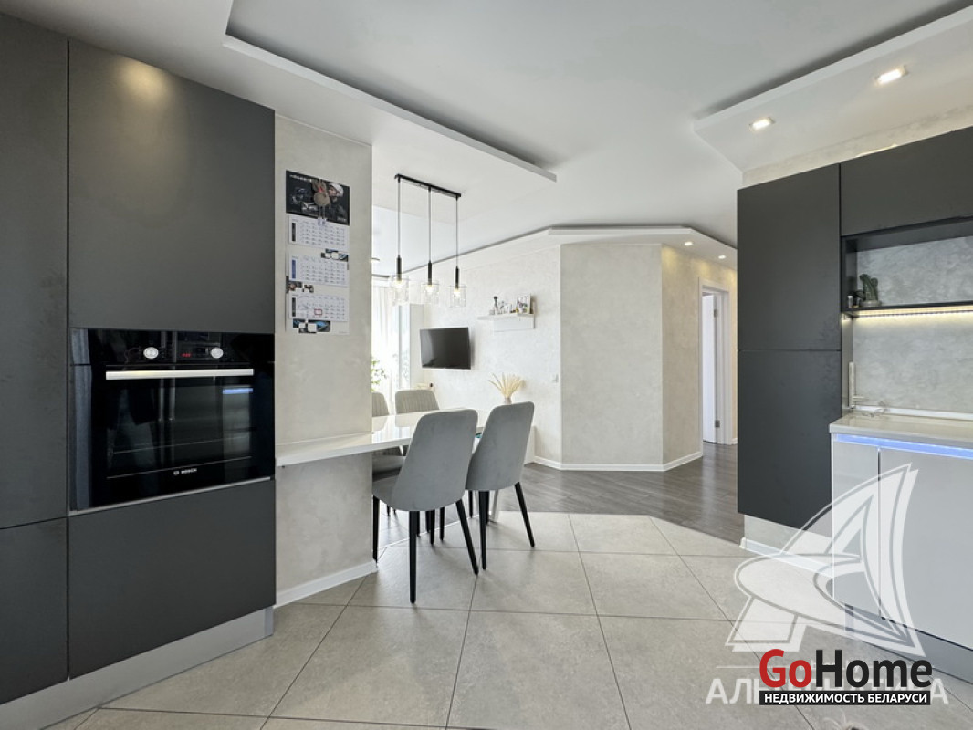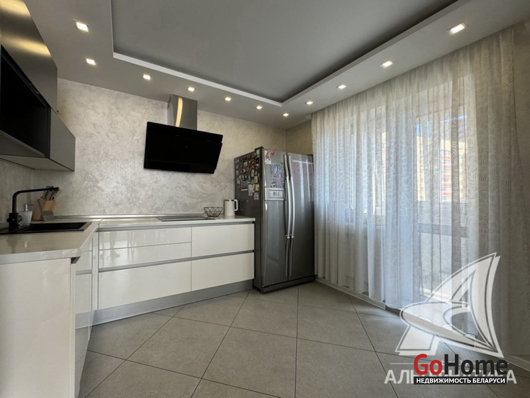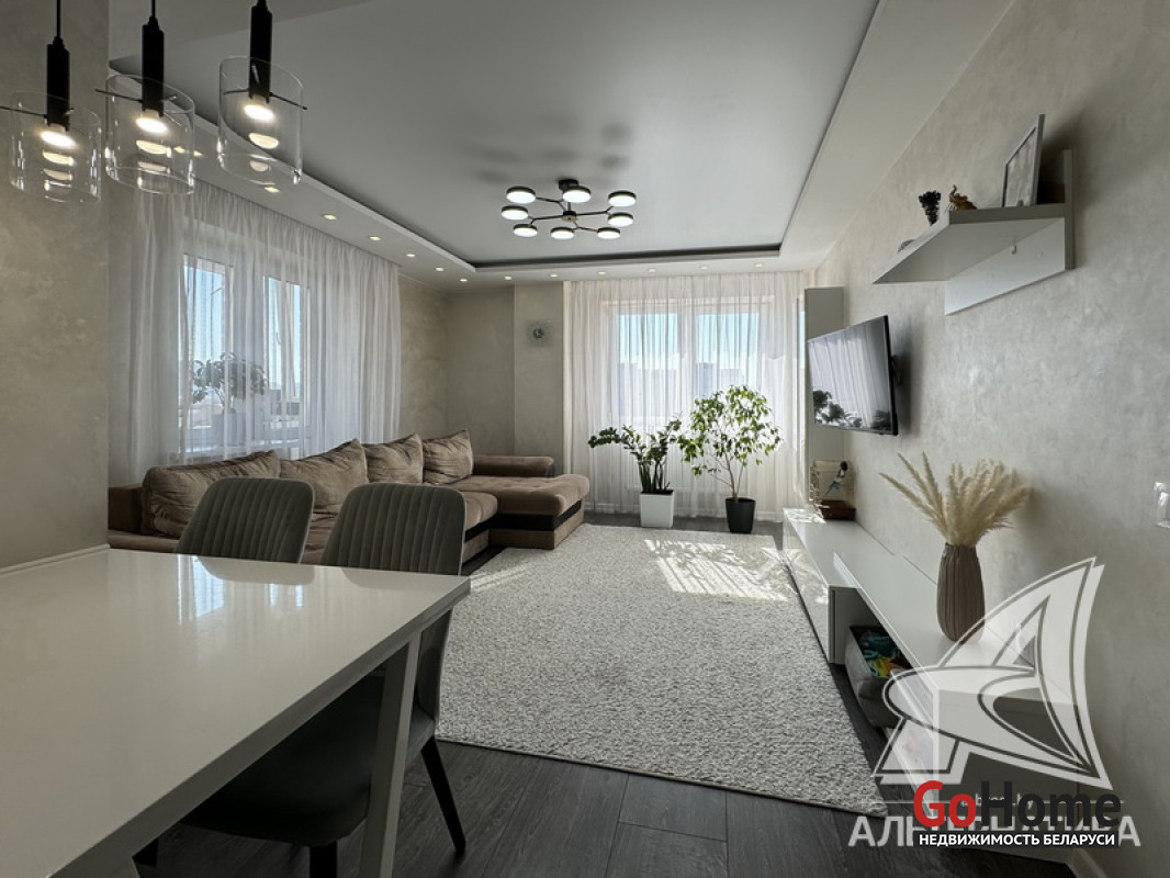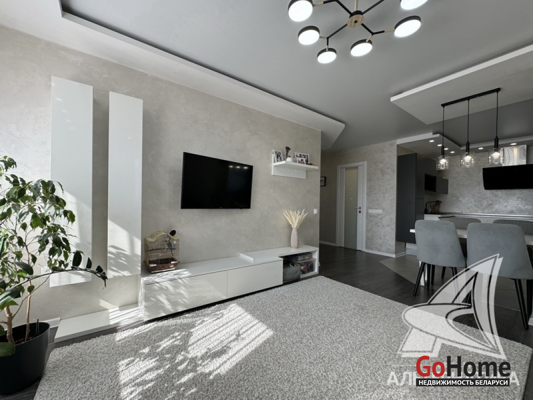 3-комнатная квартира, г. Брест, ул. Краснознаменная, 2015 г.п., 5 / 17 ж/б каркас, 86,0 / 80,5 / 46,9 / 13,4, санузел раздельный, балкон застеклен, стеклопакеты, межкомнатные двери - экошпон, входная дверь металлическая, потолки подвесные из гипсокартона, многоуровневые, с разноплановой системой освещения и натяжной сатин (2,51 м), подогрев пола (в кухне), стены оклеены обоями (в спальне, в детской) и отделаны декоративной штукатуркой, заменен полотенцесушитель, акриловая ванна, инсталляция, импортная плитка и сантехника, система видеонаблюдения, домофон. Кухонный гарнитур, вытяжка, шкаф-купе (в прихожей), прихожая, шкаф (на балконе), тумба под телевизор. Квартира с индивидуальными дизайнерскими решениями. Чистый подъезд. Имеется закрытое место для хранения колясок и велосипедов. Дом оборудован пандусом. Во дворе игровая детская площадка, парковка для автомобилей. Пассажирский и грузовой лифты. Лот - 241993