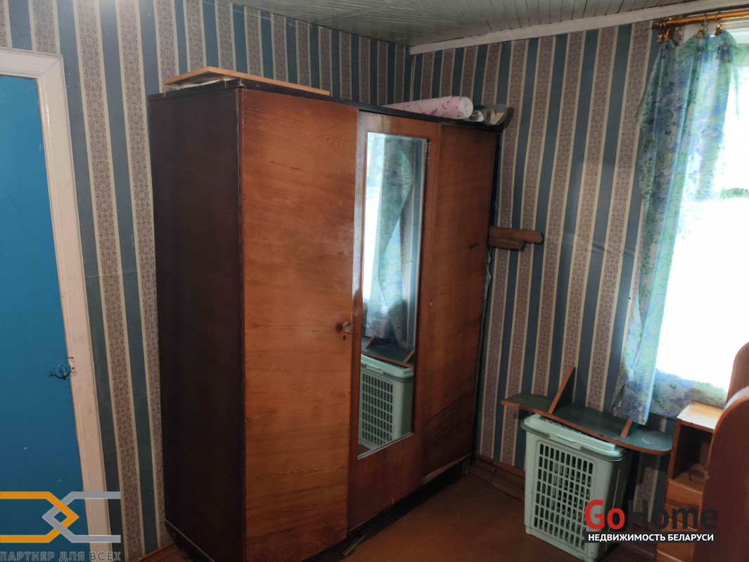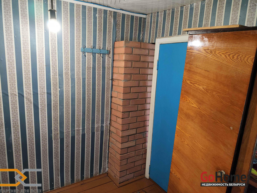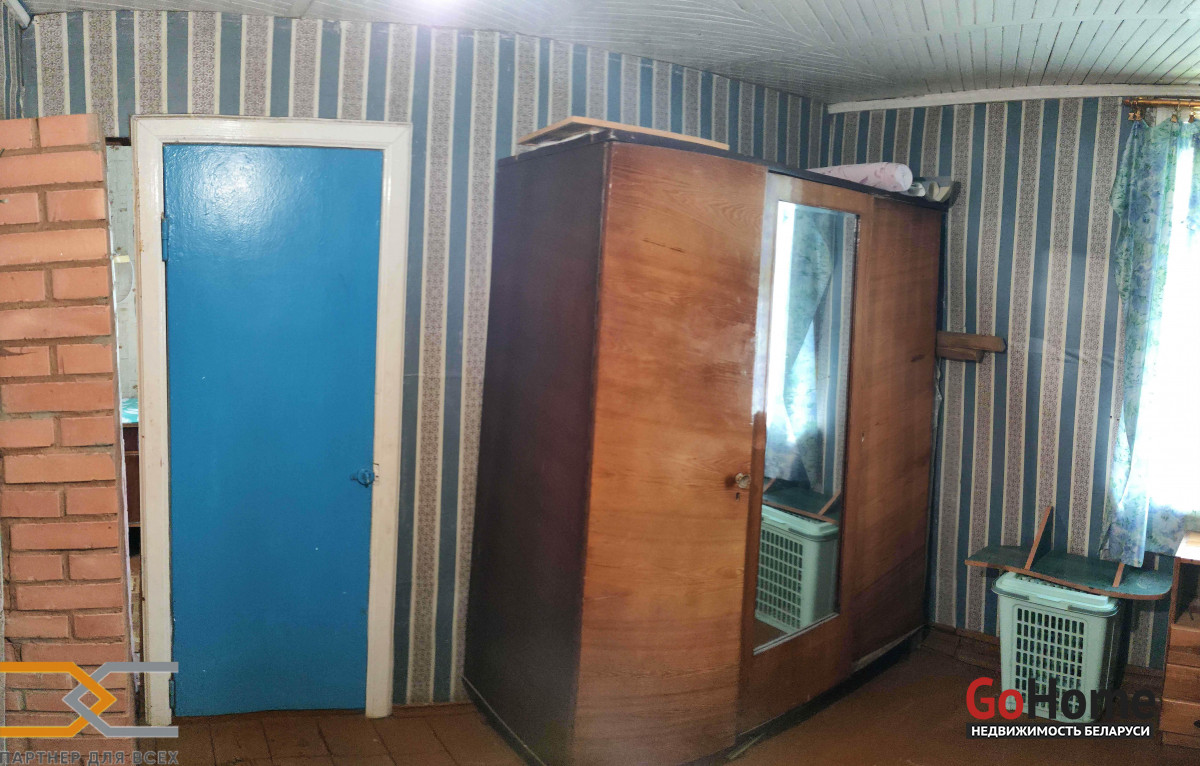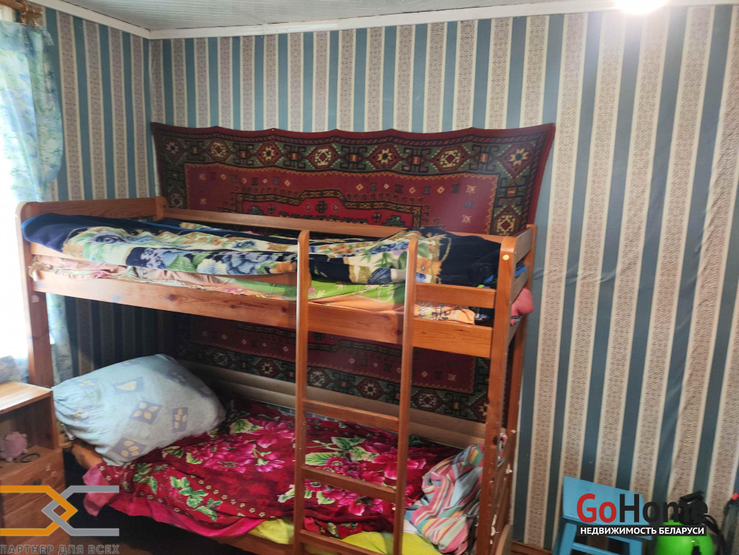 В комнатах потолки также из декоративной вагонки, стены оклеены обоями, на полу доска.