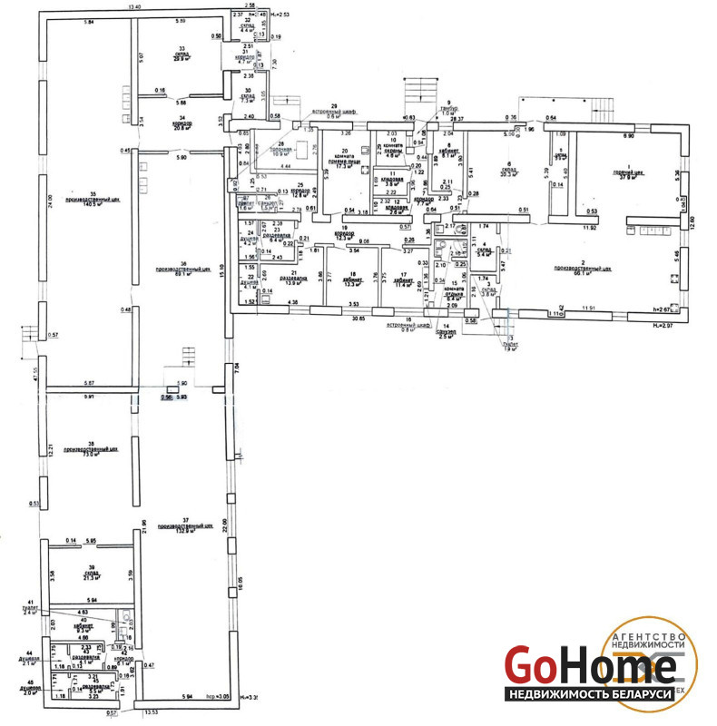 Здание состоит: 4 рабочих цеха + подсобные помещения (склад, столовая, кабинеты, душевая, санузел).