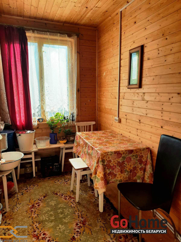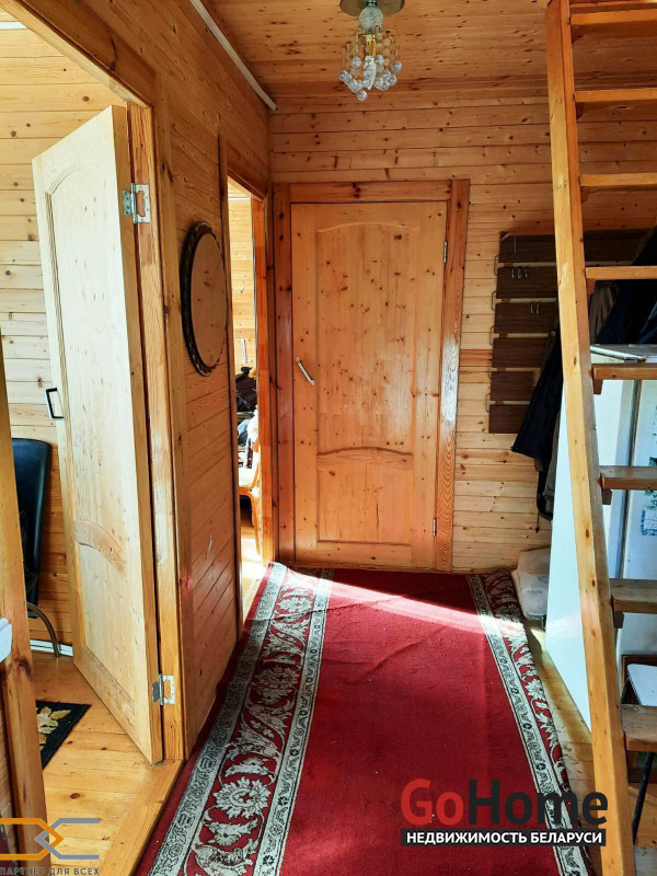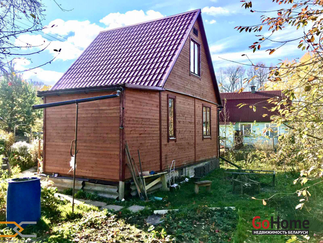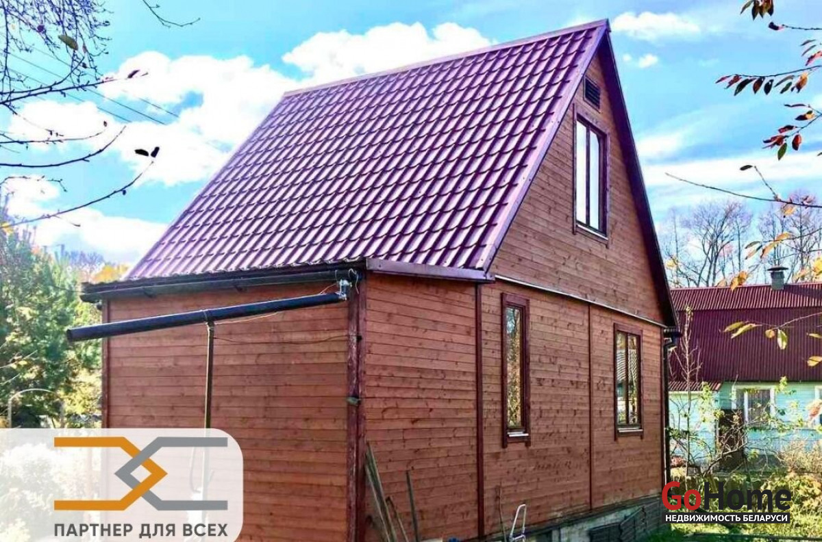 Продается дача в СТ "Руденская Надежда", 1 км до ж/д станции в г. Руденске, Пуховичское направление. Площадь общая 52 кв.м, 3 комнаты: 5.2 кв.м, 10.1 кв.м, 19.3 кв.м, высота потолков - 2.50 м, 2 уровня. Окна деревянные, пол - доска, стены - профилированный брус, кровля - оцинкованная профилированная сталь, фундамент - сваи, залитые по периметру. Двери деревянные. На участке сарай, уборная. Электричество есть, вода сезонная. Год постройки 2014. Река Свислочь 3км, смешанный лес рядом. Ларек-магазин в кооперативе. Подъездные пути - асфальт, гравийка. Участок в частной собственности 6 соток. Ограждение - сетка-рабица. На участке растут яблони, груша, черешня, персик, слива, грецкий орех, актинидия, виноград, боярышник, ежевика, калина.