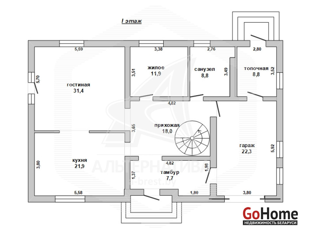 Жилой дом в г.Бресте. 2015 г.п. 1 этаж, мансарда. Общ.СНБ - 267,7 кв.м, общ.- 245,2 кв.м, жил.- 129,7 кв.м, кух.- 21,9 кв.м. 5 комнат, высота потолка - 3,05 м.