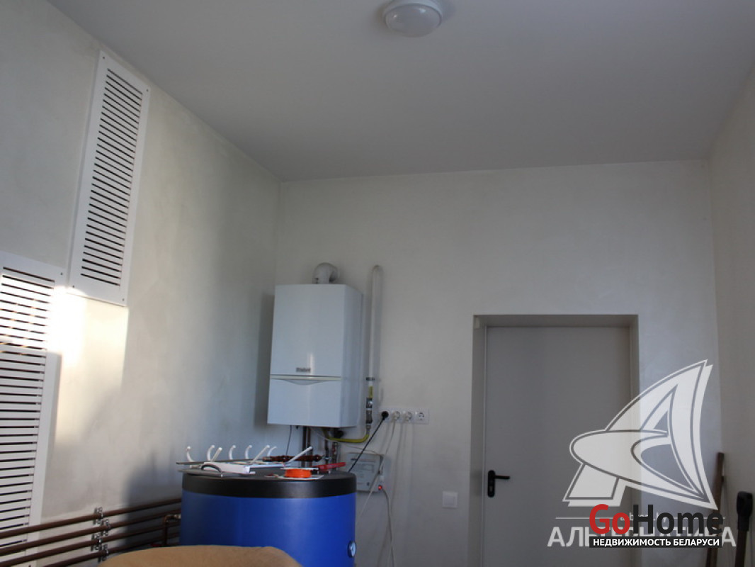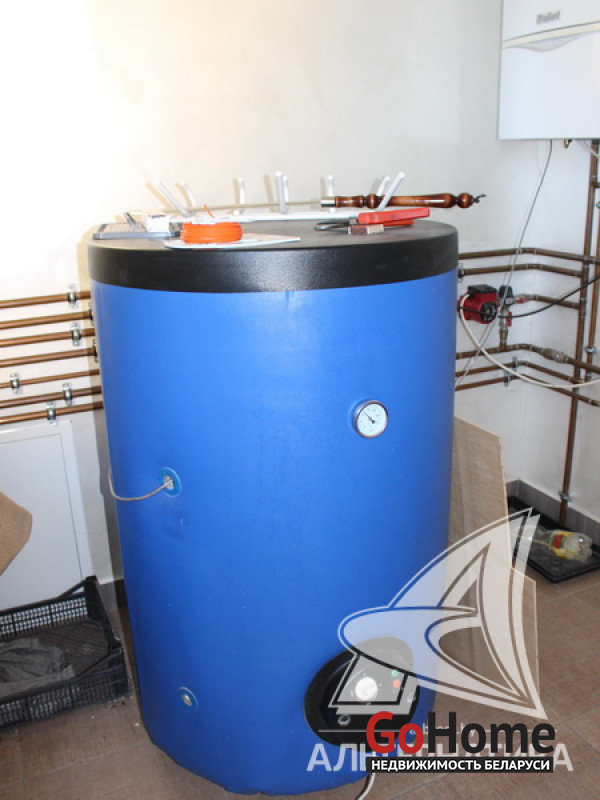 Коммуникации: отопление - газовый котел, камин, газ - централизованный, водоснабжение - централизованный водопровод и скважина на участке, электричество - централизованное.