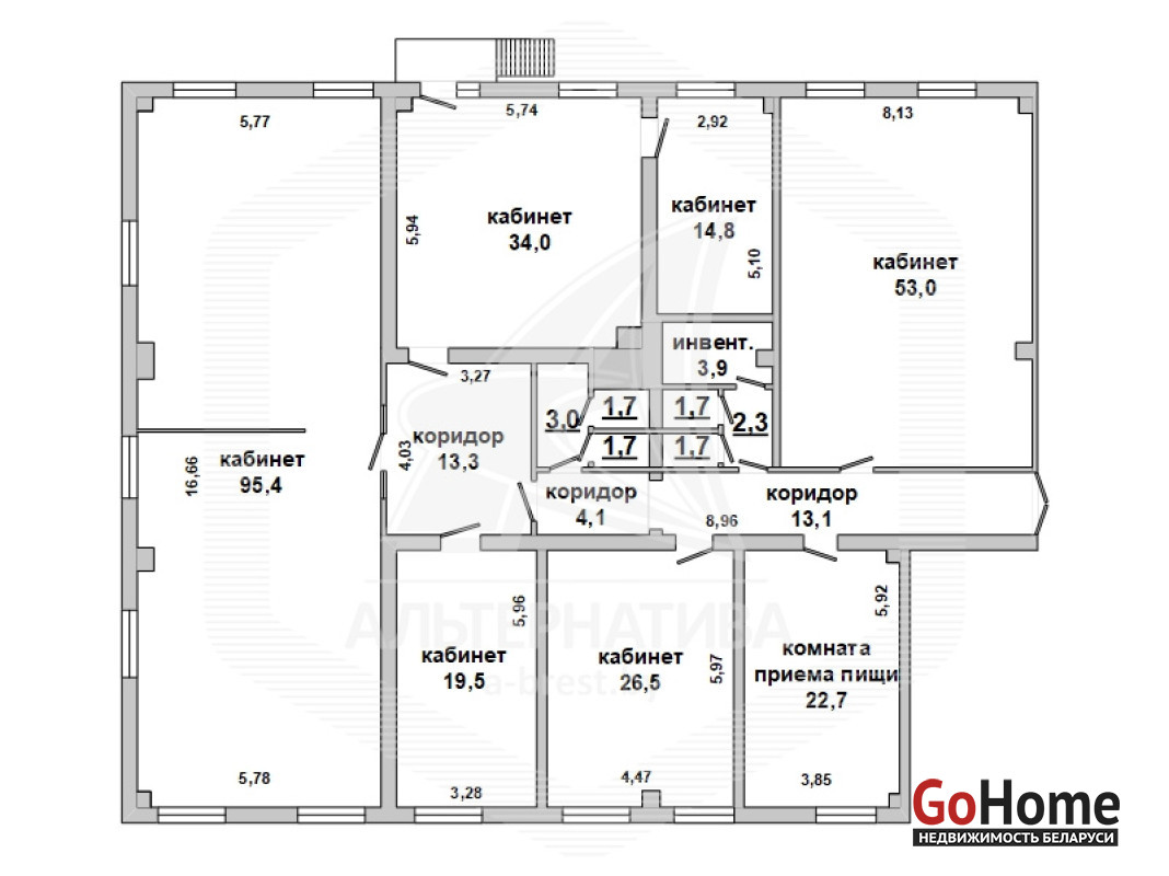Административное помещение в аренду общей площадью 310 кв.м в промышленной зоне города Бреста (р - н ул. л - та Рябцева). Изолированное помещение расположено на 1 (первом) этаже административно - хозяйственного здания. Состоит из 6 (шести) кабинетов разной площади (95,4 + 34 + 14,8 + 53 + 26,5 + 19,5 кв.м). 2 (два) отдельных санузла, комната приема пищи, коридор. Высота потолков - 2,72 м. Технические характеристики помещения: полы - плитка, ламинат, стены - ж/б панели, оштукатурены, окрашены, перекрытия - ж/б плиты, потолок - армстронг, окна, двери - ПВХ. Коммуникации: электричество, водоснабжение центральное, канализация центральная, отопление газовое. Установлены кондиционеры, индивидуальные приборы учета электричества и водоснабжения, оборудована пожарная сигнализация. Цена указана с НДС. Рассматриваются все варианты. Лот - 240046A