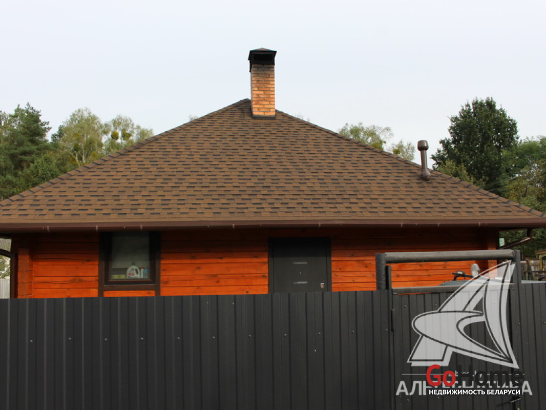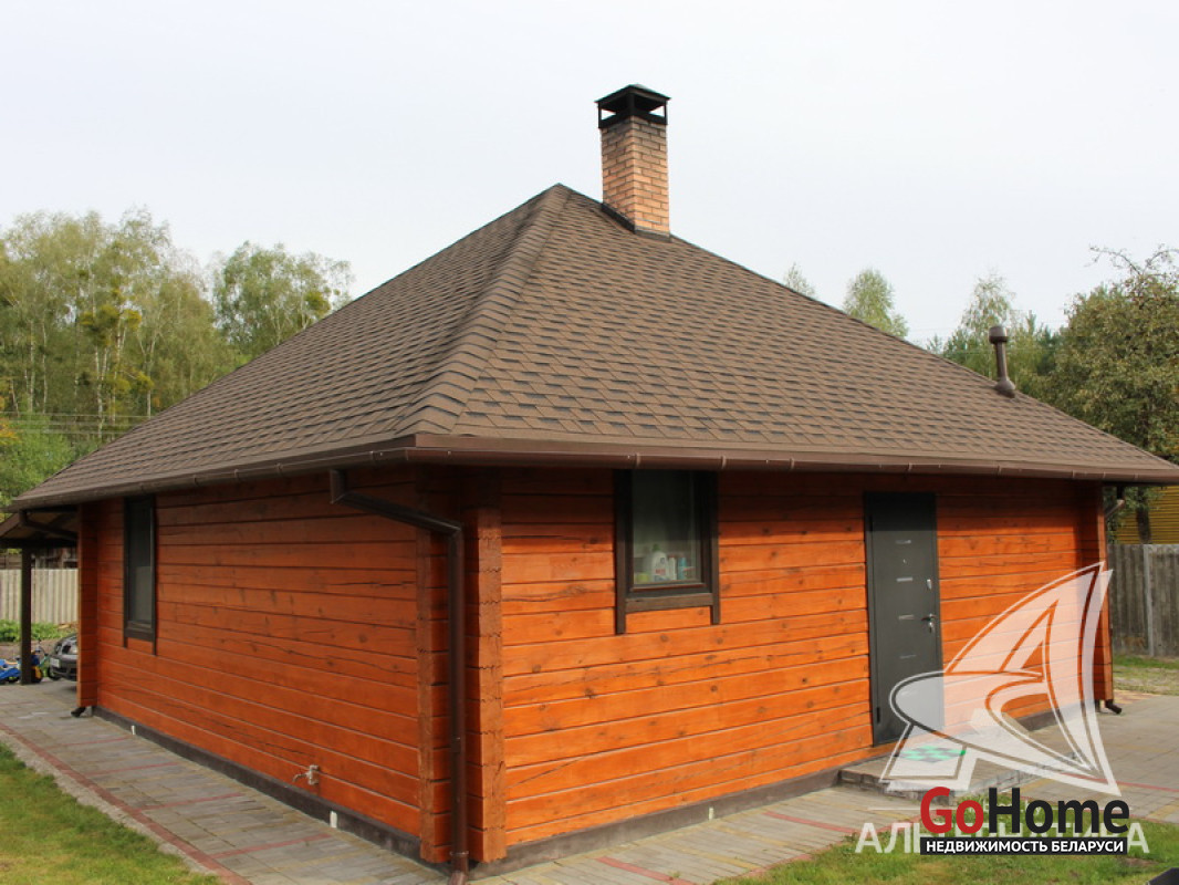 Стены: материал - профилированный брус. Кровля: мягкая битумная черепица. Фундамент: ленточный монолитный; материал - бетон.