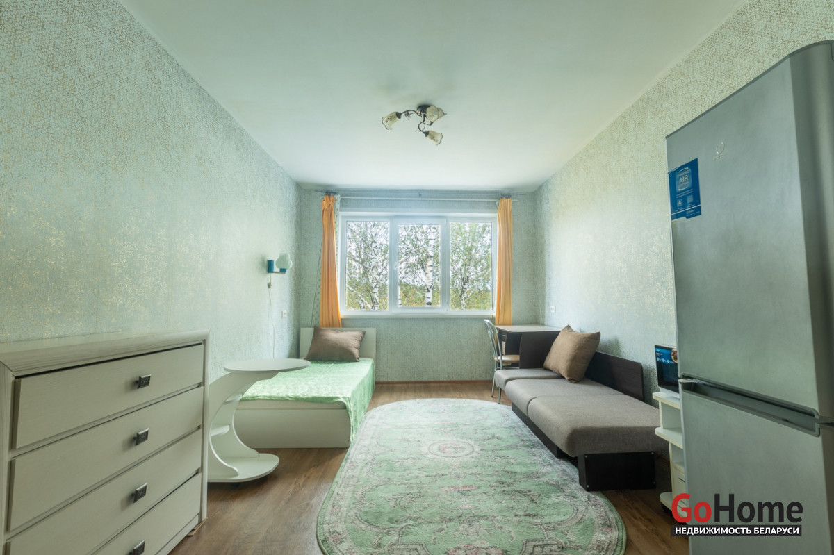 Продаю комнату 17,3 м. в трехкомнатной квартире по ул.Калиновского, 76; 2 мин. пешком от метро Восток. Соседки две женщины лет 40. В комнате сделан ремонт, окно - стеклопакет, металлическая дверь, мебель. Большая светлая комната. Не агенство, собственник. Развитая инфраструктура. Рядом торговый центр \"Dana Mall\", национальный торговый дом \"Першы\", спортивный комплекс Центр физического воспитания, Республиканский центр олимпийской подготовки по легкой атлетике, церковь Всех Святых и др.