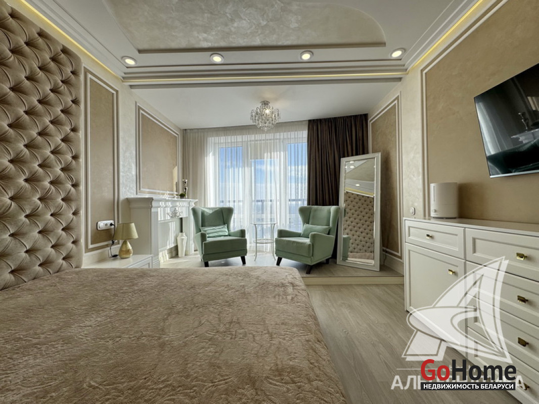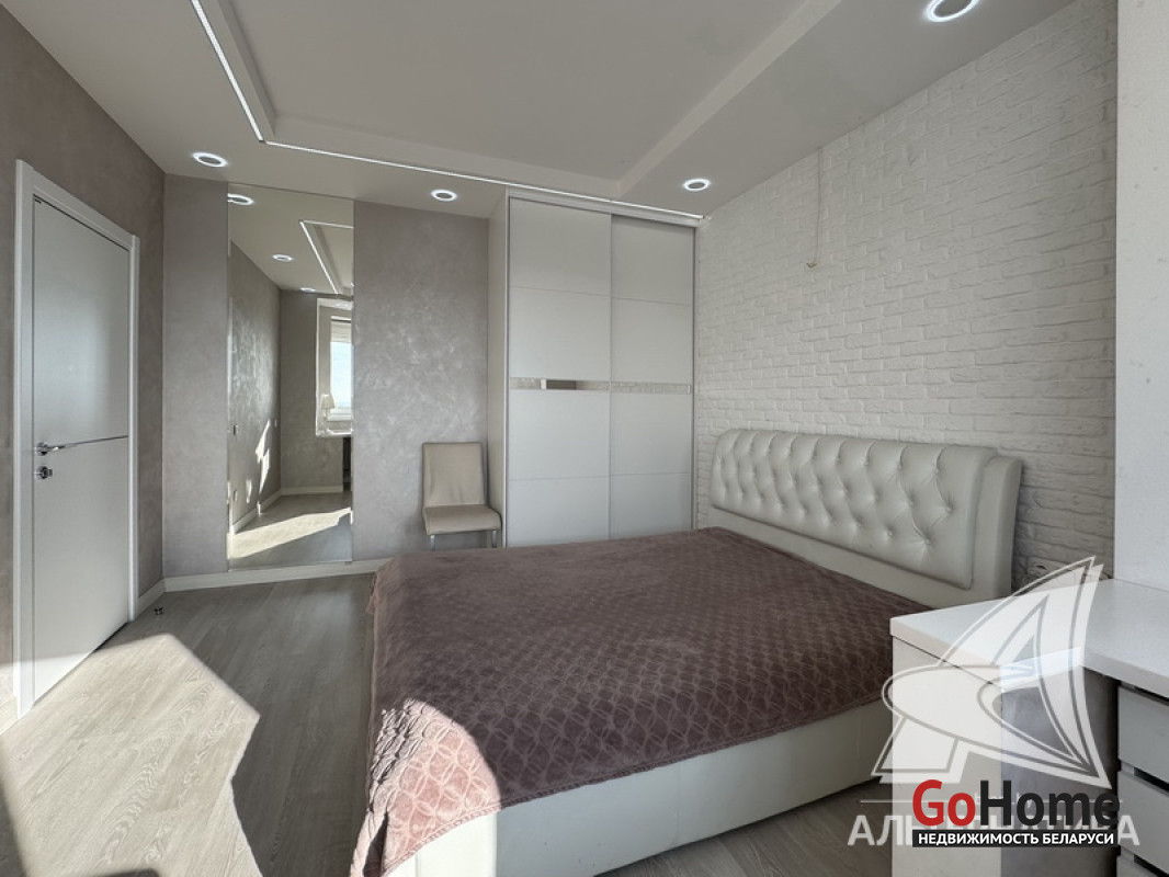 2-комнатная квартира, г. Брест, ул. Октябрьской Революции, 2017 г.п., 15 / 16 монолит, 67,6 / 64,9 / 38,5 / 9,5, санузел раздельный, балкон, стеклопакеты, окна во французском стиле, входная дверь металлическая, потолки многоуровневые, с разноплановой системой освещения (2,75 м), полы - ламинат (Бельгия) и плитка в коридоре (Италия), на стенах декоративная отделка фактурной штукатуркой, в санузле современная плитка, заменен полотенцесушитель, акриловая ванна, инсталляция (Roca), подогрев пола (в кухне), проведена новая медная электропроводка, два кондиционера, установлены фильтры очистки воды, система видеонаблюдения, домофон. В квартире остается вся мебель и бытовая техника (кроме стиральной машины и холодильника). Квартира с индивидуальными дизайнерскими решениями. Окна выходят на Гребной канал. Чистый подъезд. Лот - 242129