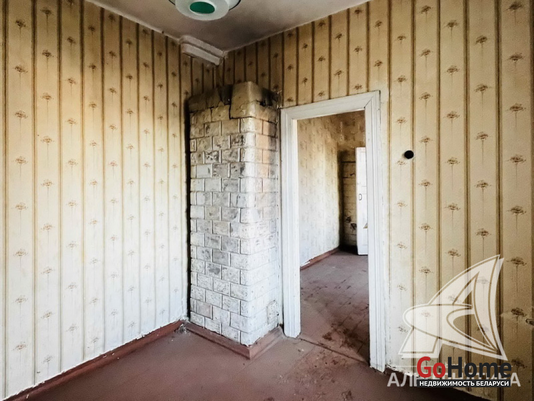 Квартира в блокированном жилом доме в г.Бресте. 1960 г.п. 1 этаж. Общ.СНБ - 29,9 кв.м, общ.- 23,9 кв.м, жил.- 17,7 кв.м, кух.- 6,2 кв.м. 2 комнаты, высота потолка - 2,82 м.