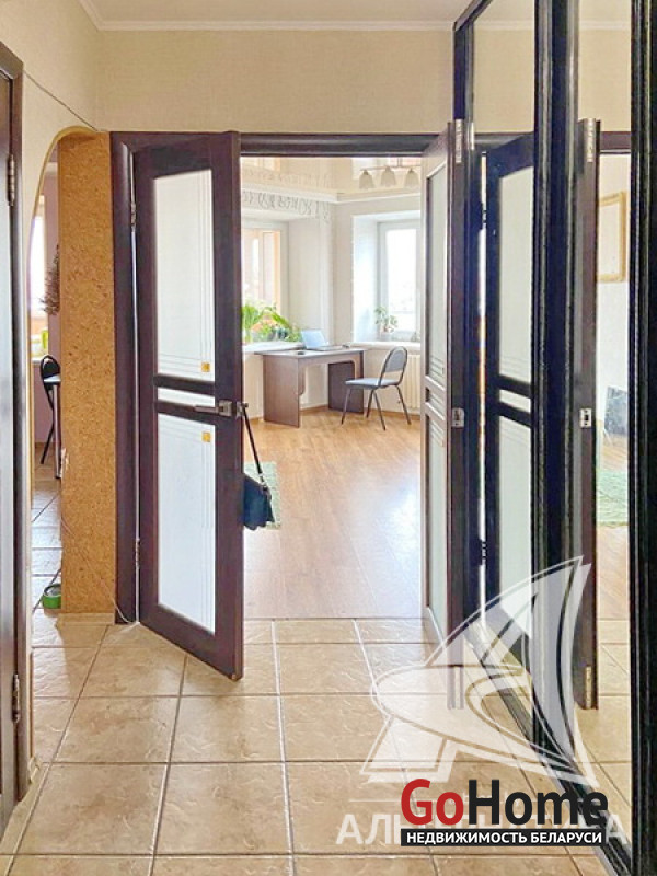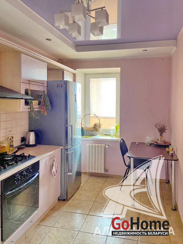 1-комнатная квартира, г. Брест, ул. Воровского, 2008 г.п., 4 / 9 кирпич, 41,4 / 38,1 / 15,1 / 9,1, санузел совмещенный, лоджия застеклена, входная дверь металлическая, многоуровневые натяжные потолки с разноплановой системой освещения (2,50 м), полы - плитка и ламинат, домофон. Кухонный гарнитур, газовая варочная поверхность, электрический духовой шкаф, вытяжка, шкаф-купе, светильники. Квартира с хорошим ремонтом. Чистый подъезд. Лот - 220684