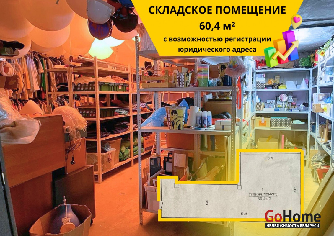 Продаётся склад по адресу: Мележа 5/2. Общая площадь склада составляет 60,4 квадратных метров, что делает его идеальным вариантом для небольшого бизнеса или хранения товаров.