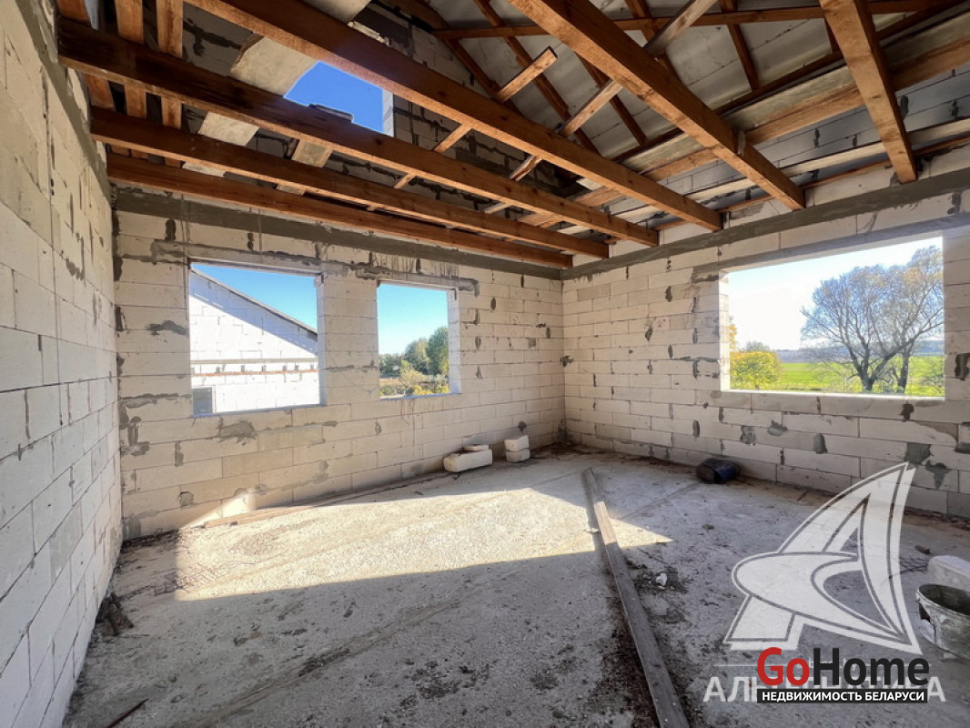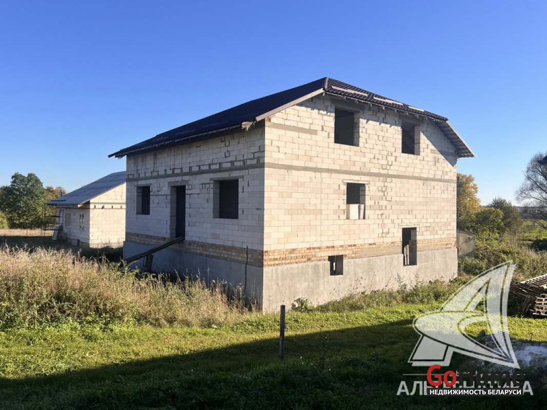 Коробка жилого дома в Брестском р-не. 2019 г.п. 1 этаж, цокольный этаж, мансарда. Общ.СНБ - 191,85 кв.м, общ.- 191,85 кв.м, жил.- 71,74 кв.м, кух.- 25,9 кв.м. 4 комнаты, высота потолка - 2,80 м.