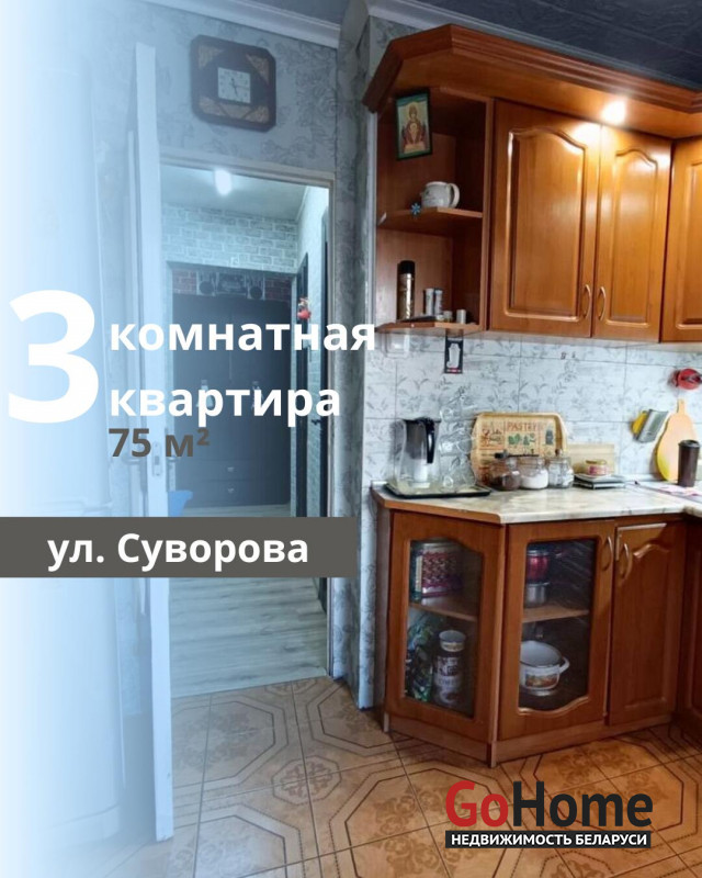 Продается 3-комнатная квартира на улице Суворова, общей площадью 75 м2 и жилой площадью 40,4 м2. Квартира находится на 2 этаже 9-этажного панельного дома, построенного в 1994 году. Современная планировка включает три изолированные комнаты, две из которых имеют выход на лоджии, а также гардеробную и просторную кухню площадью 9 м2. Функциональный коридор и раздельный санузел обеспечивают комфортное проживание. На лоджиях установлены стеклопакеты ПВХ, потолки отделаны потолочной плиткой, стены оклеены обоями, а на полах уложены ламинат и ковролин, в санузле — плитка. Входная дверь — металлическая, а сам санузел облицован керамической плиткой нового образца. В подъезде поддерживается чистота и порядок. В непосредственной близости находятся школа, детский сад и магазин, а тихий и уютный двор создаёт атмосферу комфорта и уюта.
