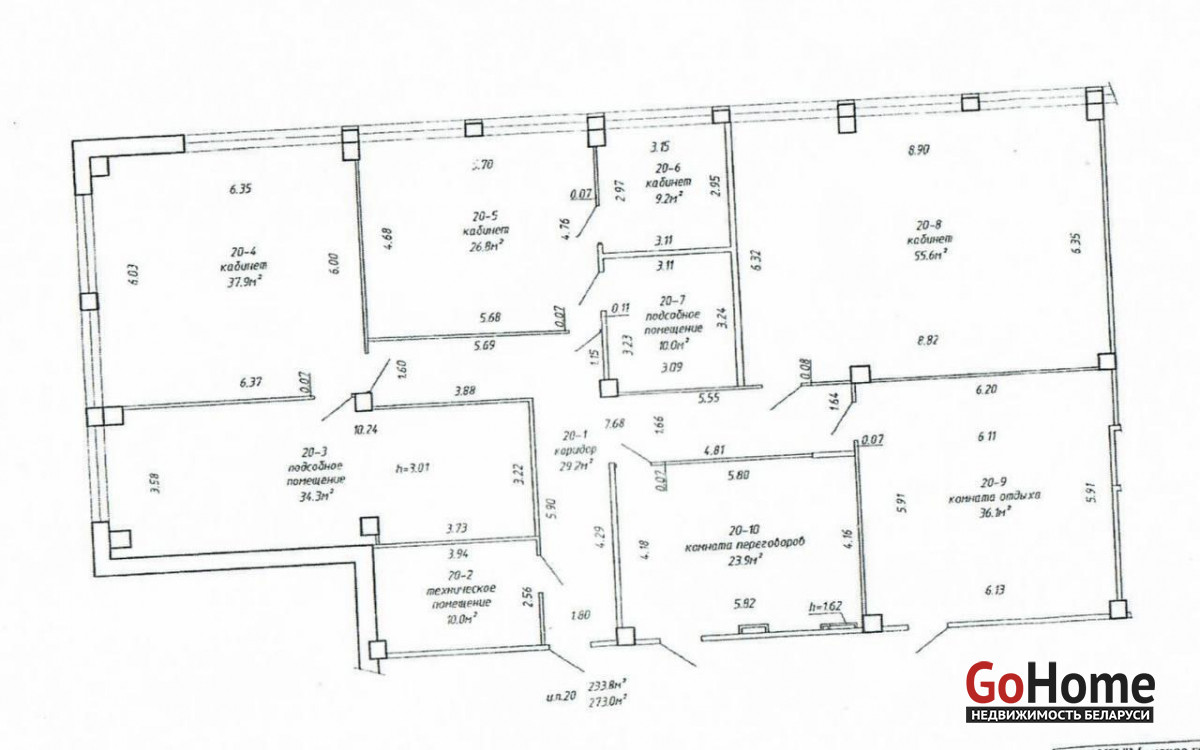 Помещение с ремонтом, общей площадью 273 м.кв, расположено на 6-м этаже.