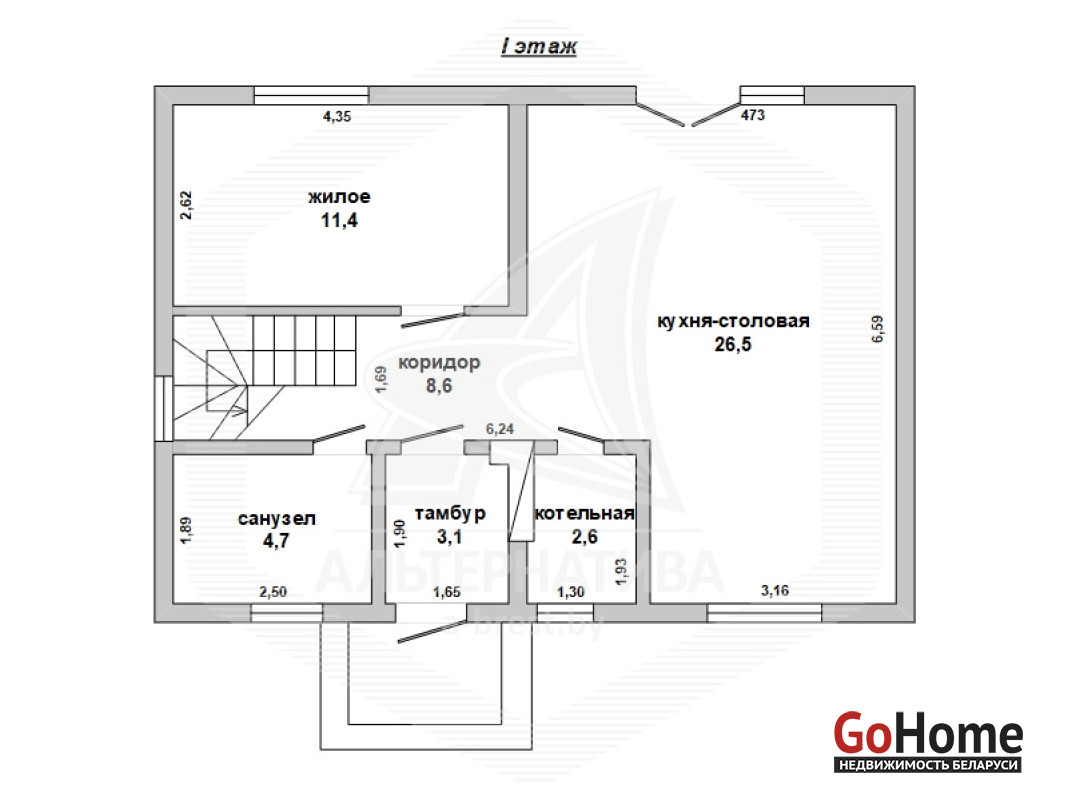 Жилой дом в Брестском р-не. 2019 г.п. 1 этаж, мансарда. Общ.СНБ - 115,3 кв.м, общ.- 115,3 кв.м, жил.- 53,1 кв.м, кух.- 26,5 кв.м. 4 комнаты, высота потолка - 2,70 м.