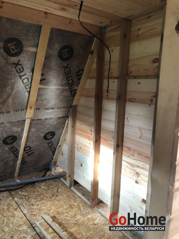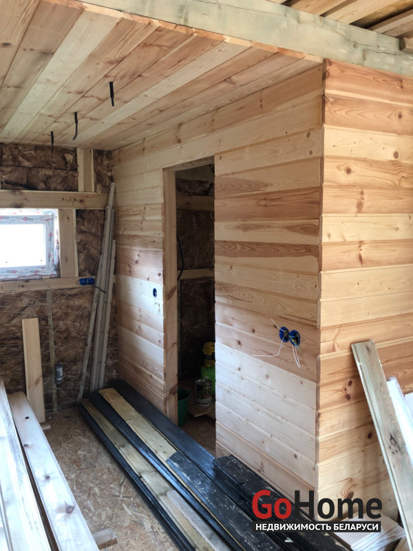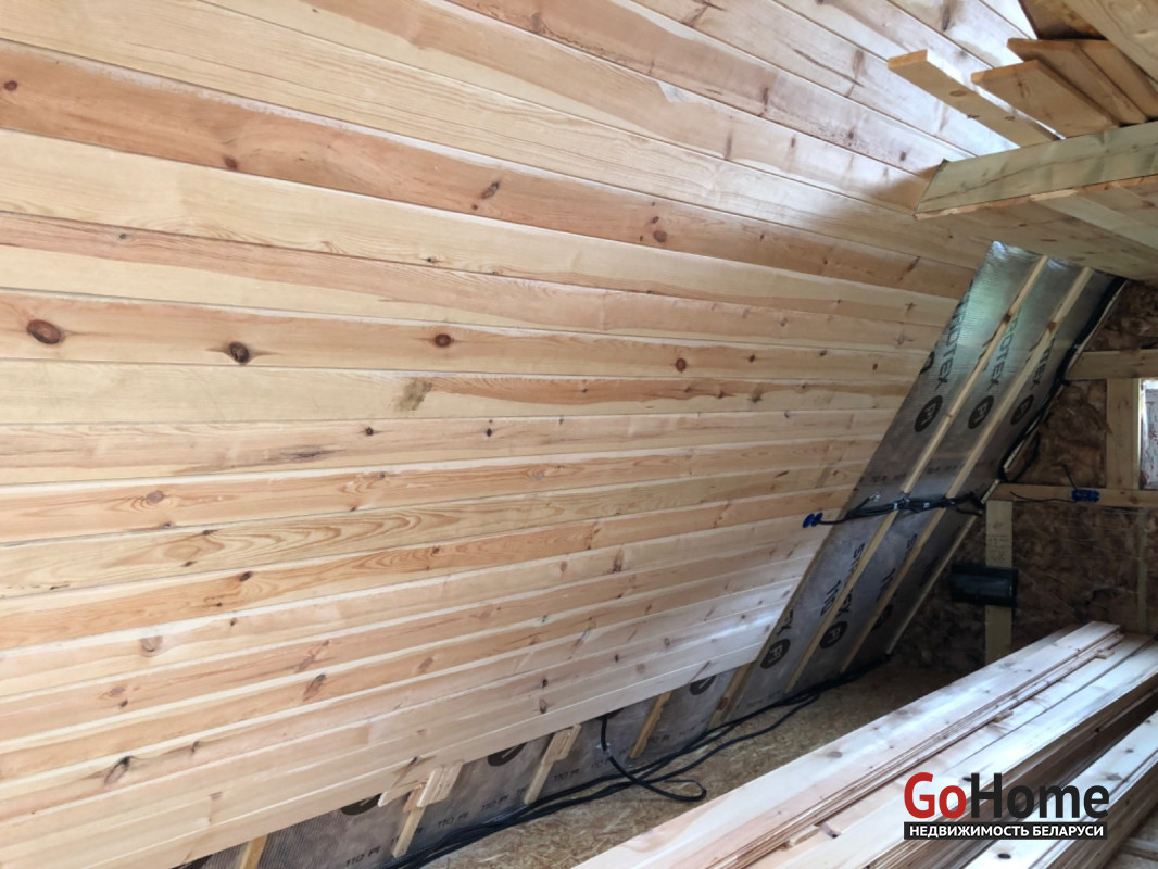 1. Зашиваю все имитацией бруса до конца внутри