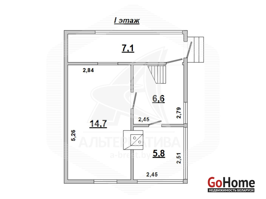Садовый домик в Брестском р-не. 1993 г.п. 1 этаж, мансарда. Общ.- 51,4 кв.м. 2 комнаты.