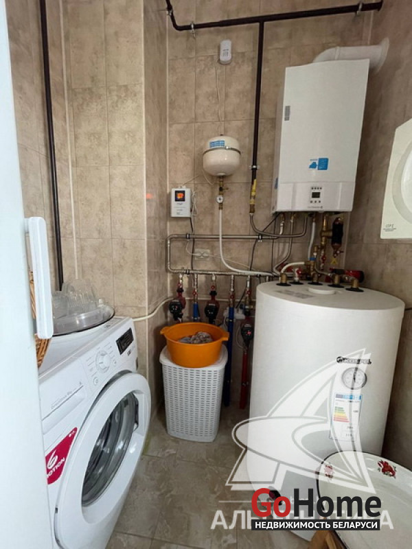 Коммуникации: отопление - газовый котел, газ - централизованный (в доме), водоснабжение - скважина и гидрофор, электричество - централизованное, канализация - автономная.