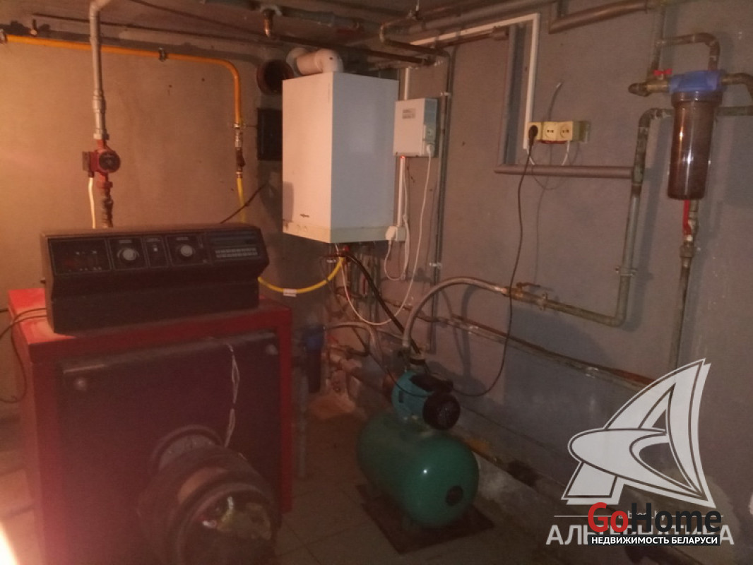 Коммуникации: отопление - газовый котел и камин, газ - централизованный (в доме), водоснабжение - скважина и гидрофор, электричество - централизованное, канализация - автономная.