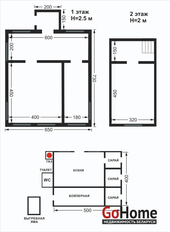Отдельно стоящее здание (около 18 м): кухня (частично обустроена, имеются три б/у стеклопакета в хорошем состоянии, газонокосилка, вилы, латаны и др. инструмент), бойлерная, 3 сарая.