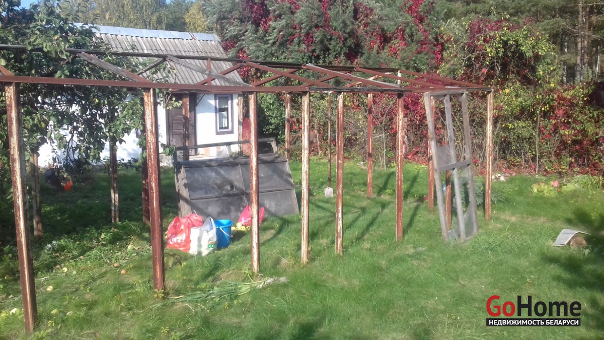 Теплица металлический каркас (огромная, в хорошем состоянии, но не покрашенная), выгребная яма бетонированный, яма для слива из душа воды – бетонирована.