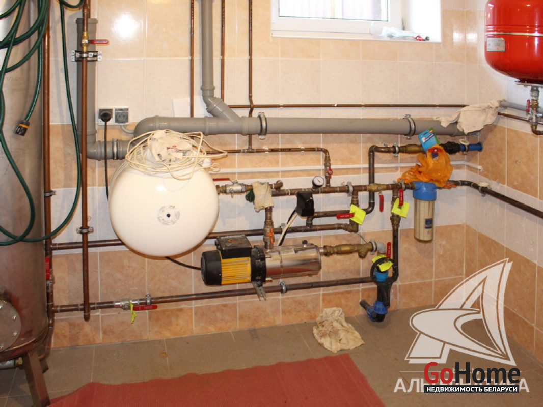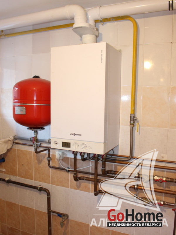 Коммуникации: отопление - газовый котел, газ - централизованный (в доме), водоснабжение - централизованный водопровод, скважина и гидрофор, электричество - централизованное, канализация - централизованная.