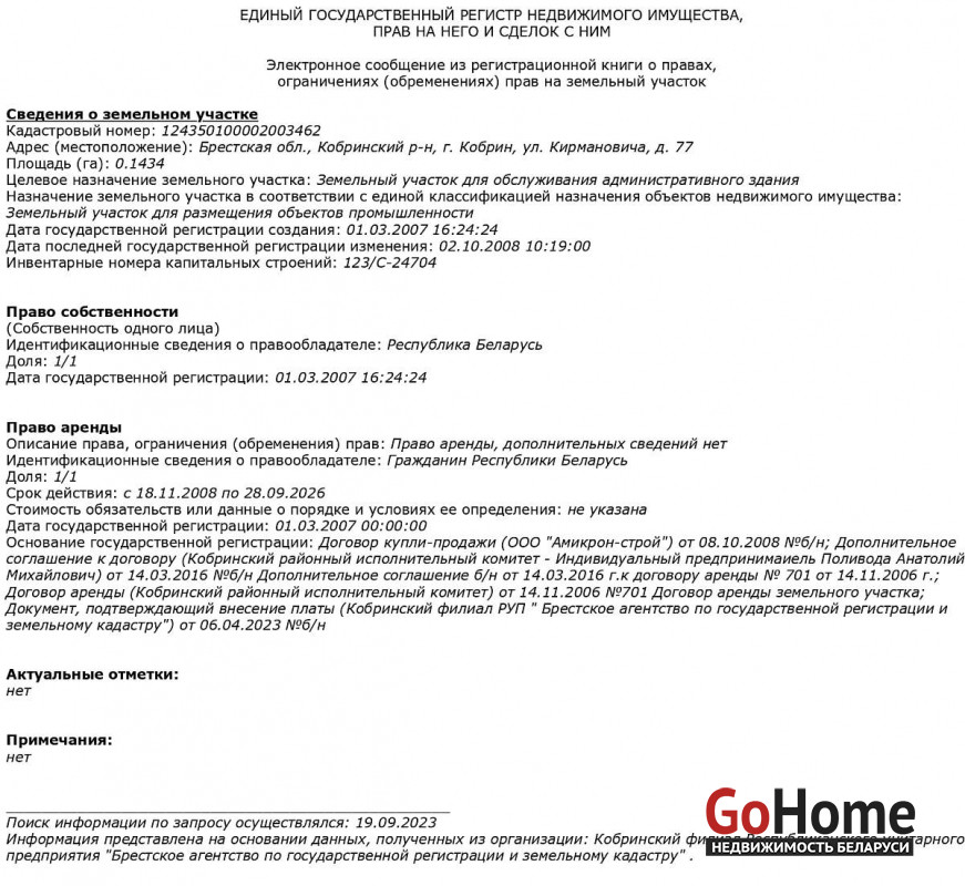 Расположено на земельном участке, площадью 0.1434 га, с кадастровым номером 124350100002003462;