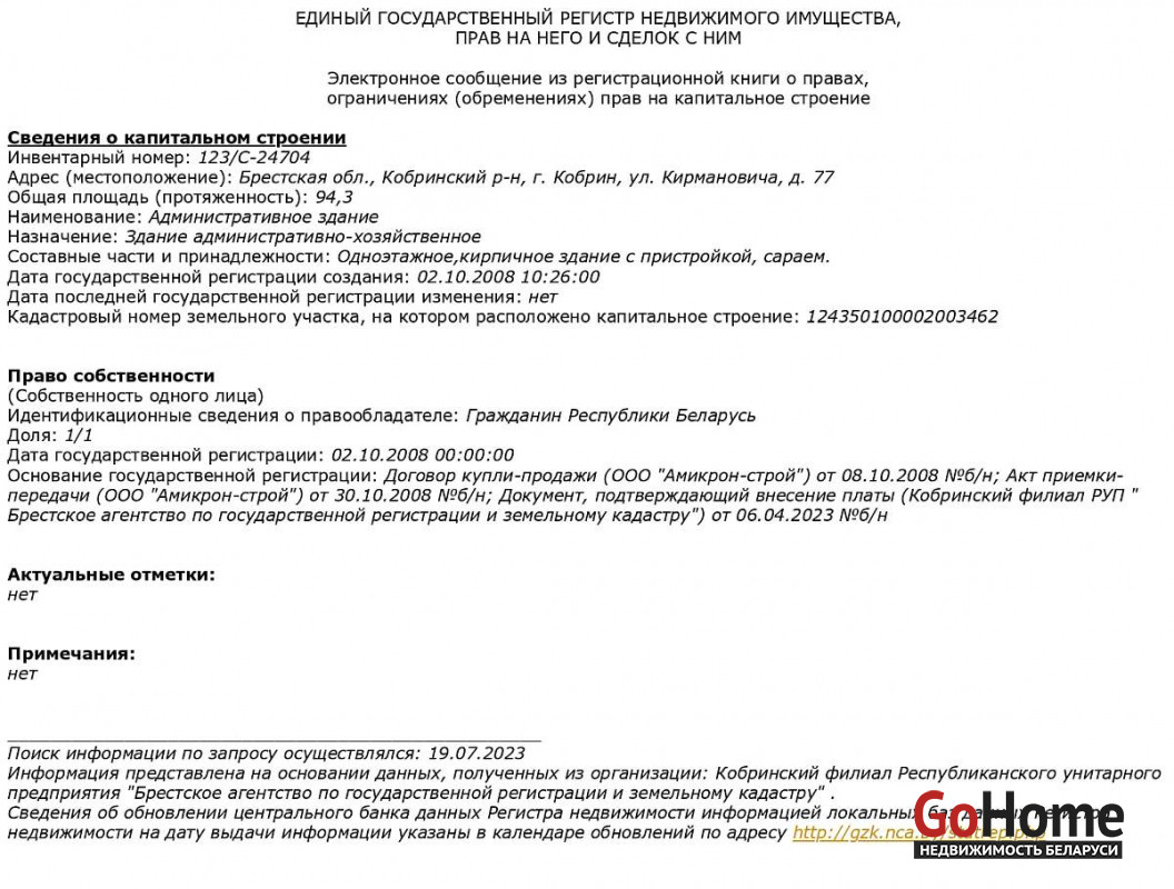 Составные части и принадлежности: Одноэтажное,кирпичное здание с пристройкой, сараем;