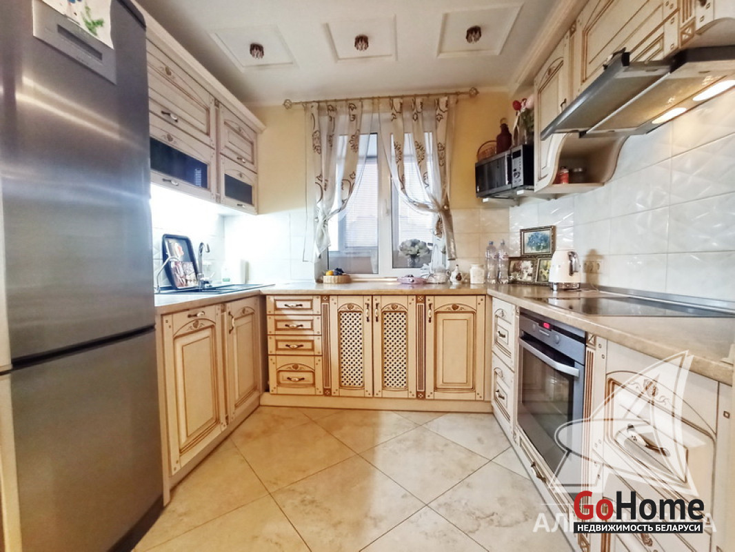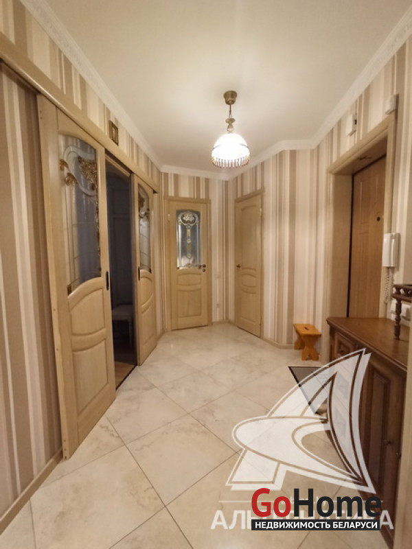 1-комнатная квартира, г. Брест, ул. Московская, 2009 г.п., 7 / 13 блок, 50,6 / 47,7 / 19,3 / 13,0, санузел совмещенный, лоджия, межкомнатные двери - массив, входная дверь металлическая, потолки - 2,63 м., полы - паркетная доска (дуб) и плитка (Италия), есть подогрев пола (три регулятора - санузел, коридор, кухня), в санузле современная плитка, заменена сантехника, заменен полотенцесушитель, ванна, звукоизоляция с соседней квартирой, домофон. Кухонный гарнитур, вытяжка, электрическая варочная поверхность, духовой шкаф, посудомоечная машина, шкаф-купе (на лоджии). Квартира с индивидуальными дизайнерскими решениями. Чистый подъезд. Два пассажирских и один грузовой лифты. Лот - 242397