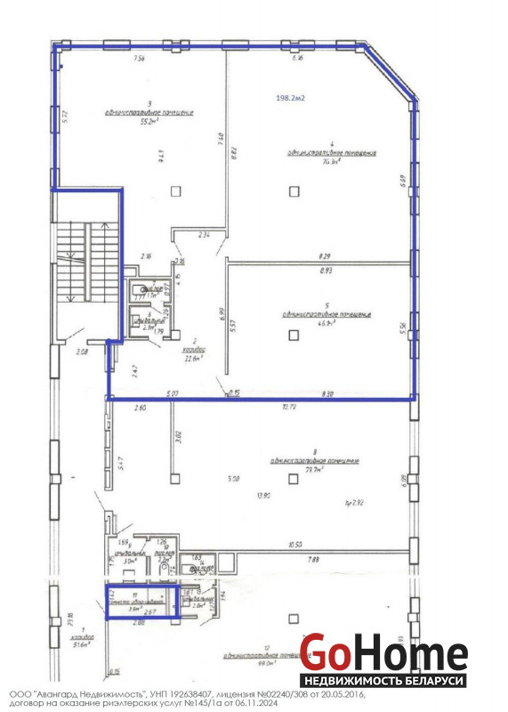 На 2-м этаже:- офисный блок площадью 198.2 м2 (состоит из 3-х кабинетов с возможностью зонирования пространства).