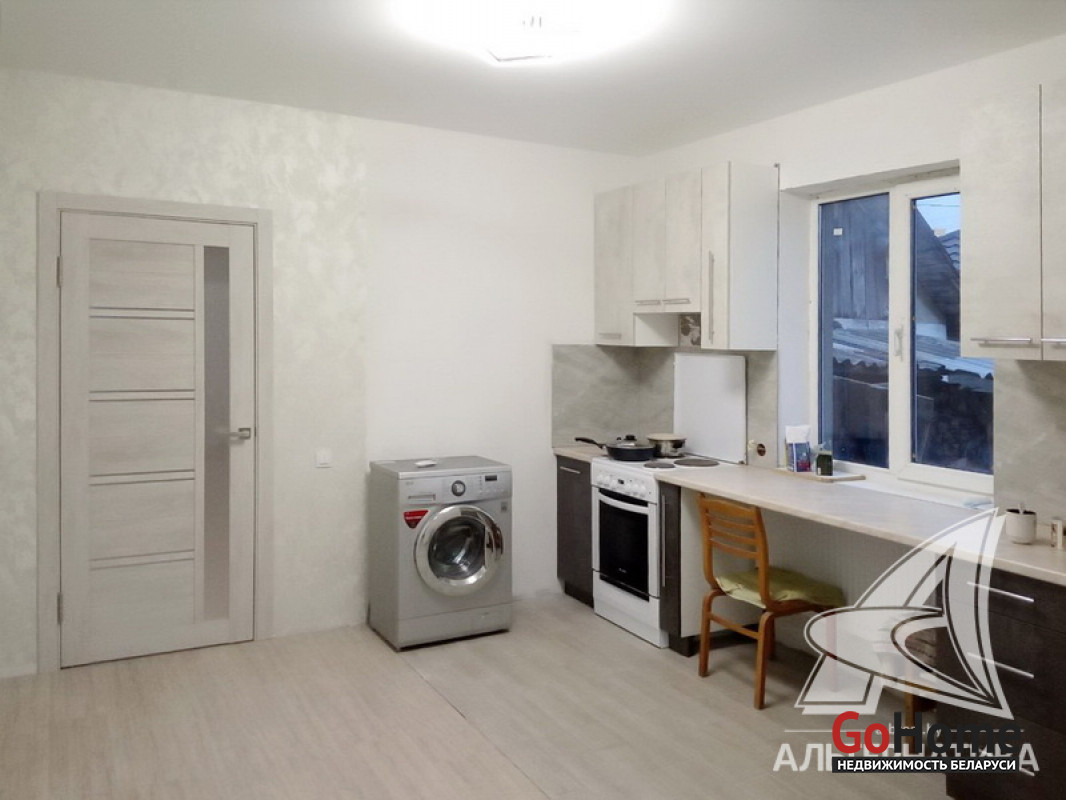 Квартира в блокированном жилом доме в г.Бресте. 1959 г.п. 1 этаж. Общ.СНБ - 57,8 кв.м, общ.- 57,8 кв.м, жил.- 27,8 кв.м, кух.- 17,1 кв.м. 2 комнаты, высота потолка - 2,74 м.