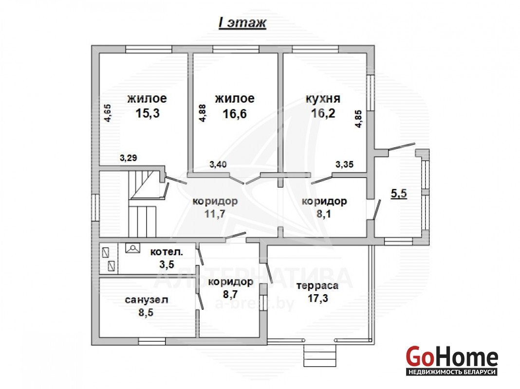 Жилой дом в г.Бресте. 1994 г.п., реконструкция 2000 г. 2 этажа. Общ.СНБ - 169,5 кв.м, общ.- 158,8 кв.м, жил.- 62,5 кв.м, кух.- 16,2 кв.м. 5 комнат, потолки - 2,8 м.