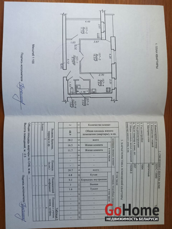 Квартира находится на шестом этаже девятиэтажного кирпичного дома, который был построен в 1994 году. Общая площадь квартиры составляет 48,9 кв.м., из которых 28,3 кв.м. жилая площадь.