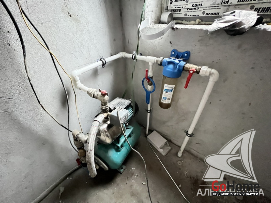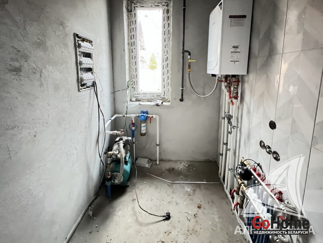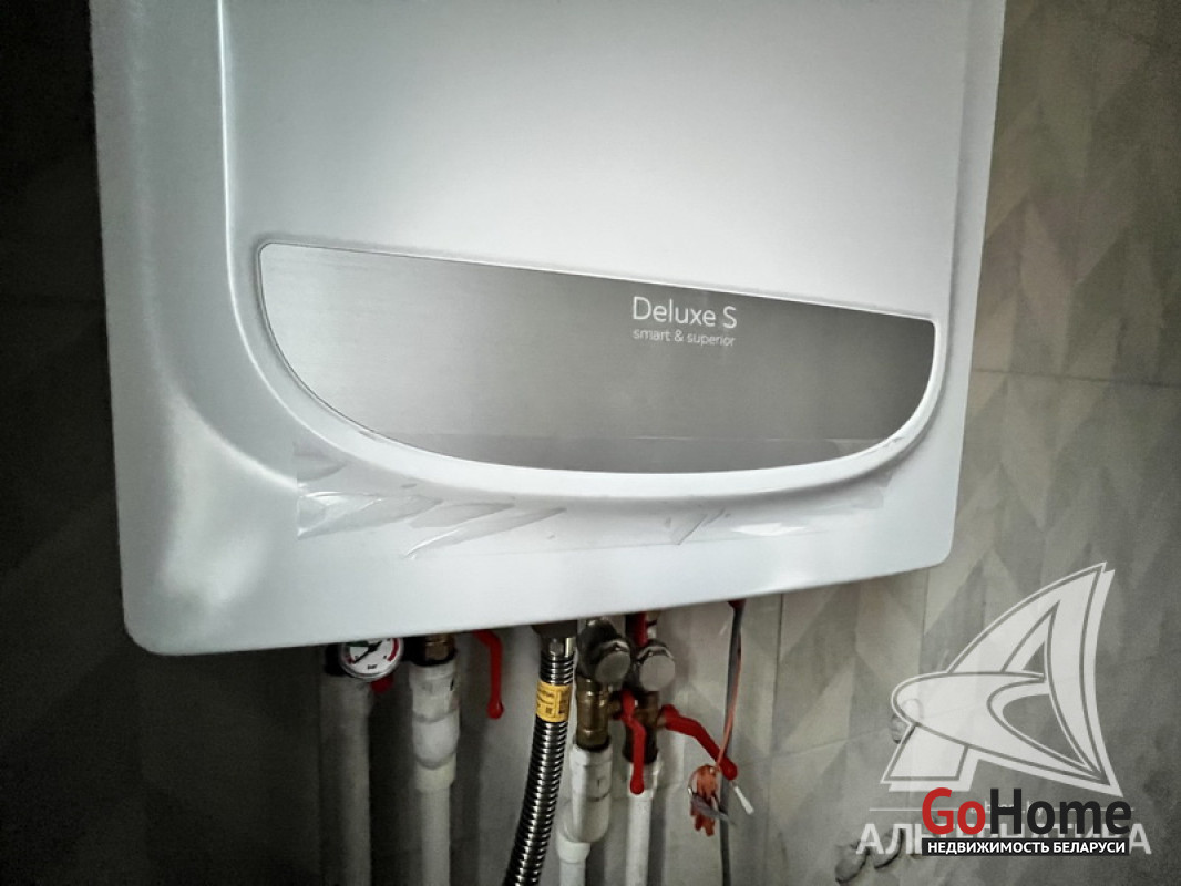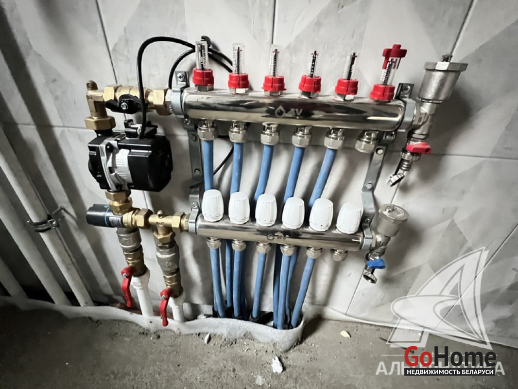 Коммуникации: отопление - газовый котел, газ - централизованный (в доме), водоснабжение - скважина, электричество - централизованное, канализация - автономная.