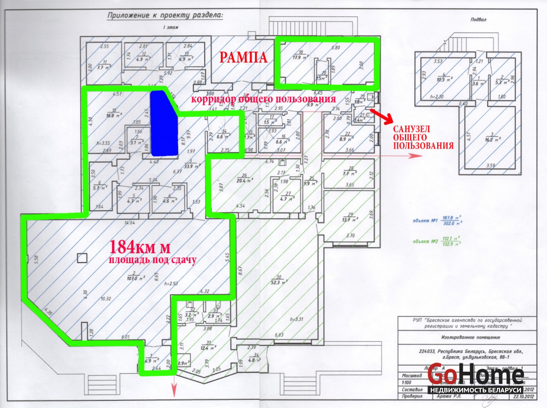Административно - торговое помещение в аренду в центральной части города Бреста общей площадью 74,1 кв.м. Изолированное помещение с отдельным входом расположено на 1 (первом) этаже жилого дома. Состоит из торгового зала