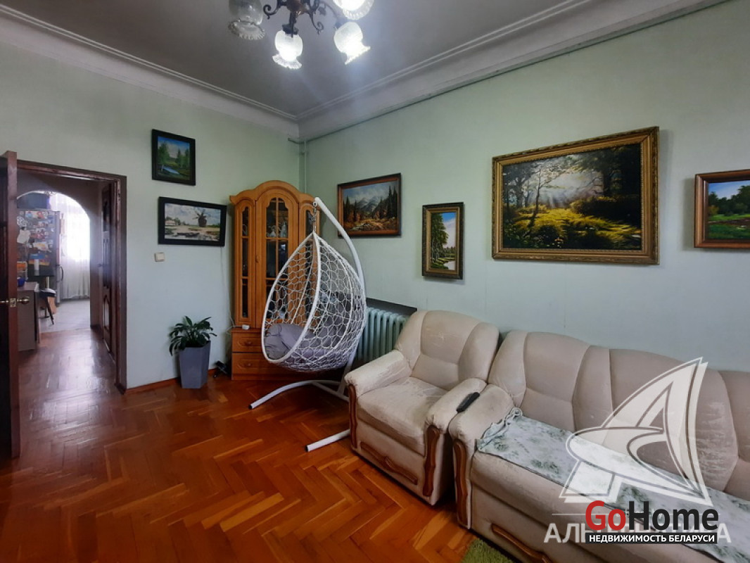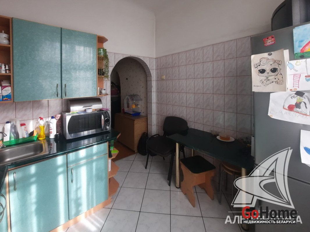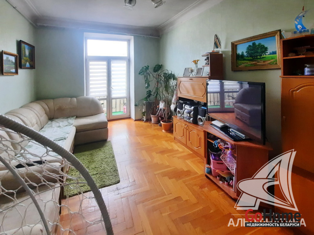 2-комнатная квартира, г. Брест, ул. Комсомольская, 1953 г.п., 3 / 3 кирпич, 51,9 / 51,3 / 31,6 / 7,5, санузел совмещенный, балкон, подвал, стеклопакеты, межкомнатные двери - массив со стеклом, входная дверь металлическая, потолки - снежка и подвесные из гипсокартона (3,1 м), полы - паркет и плитка, стены оклеены обоями, в санузле современная плитка, домофон. Кухонный гарнитур. Квартира в жилом состоянии. Лот - 242479