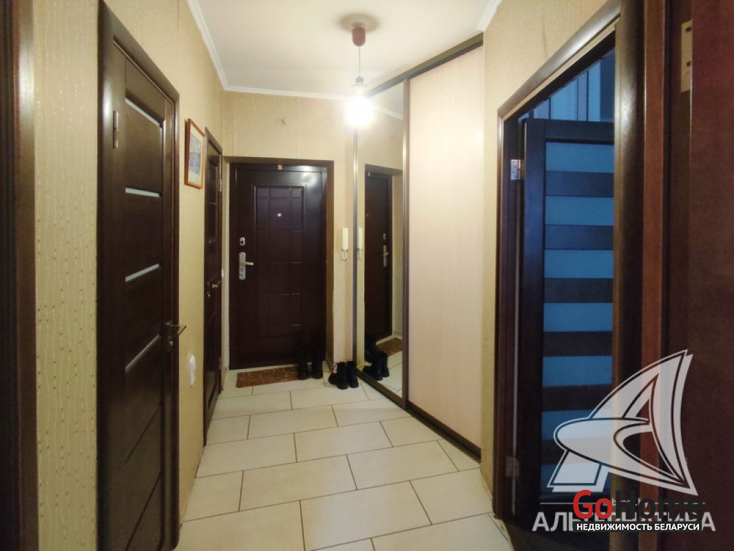 1-комнатная квартира, г. Брест, ул. Жукова, 2009 г.п., 2 / 5 кирпич, 43,2 / 40,6 / 21,4 / 9,1, санузел раздельный, лоджия застеклена, подвал, стеклопакеты, межкомнатные двери - шпон, входная дверь металлическая, потолки - снежка, полы - ламинат и плитка (в коридоре, в кухне), стены оклеены обоями, чугунная ванна, телефон, домофон. Кухонный гарнитур, шкаф-купе в коридоре. Квартира с хорошим ремонтом. Тамбур на три квартиры. Во дворе парковка для автомобилей. Дом расположен в глубине двора. Лот - 242495