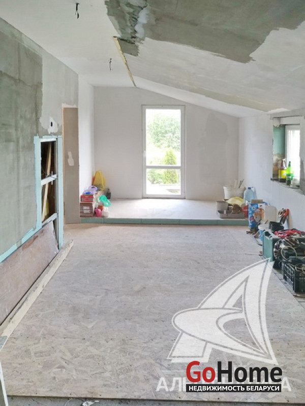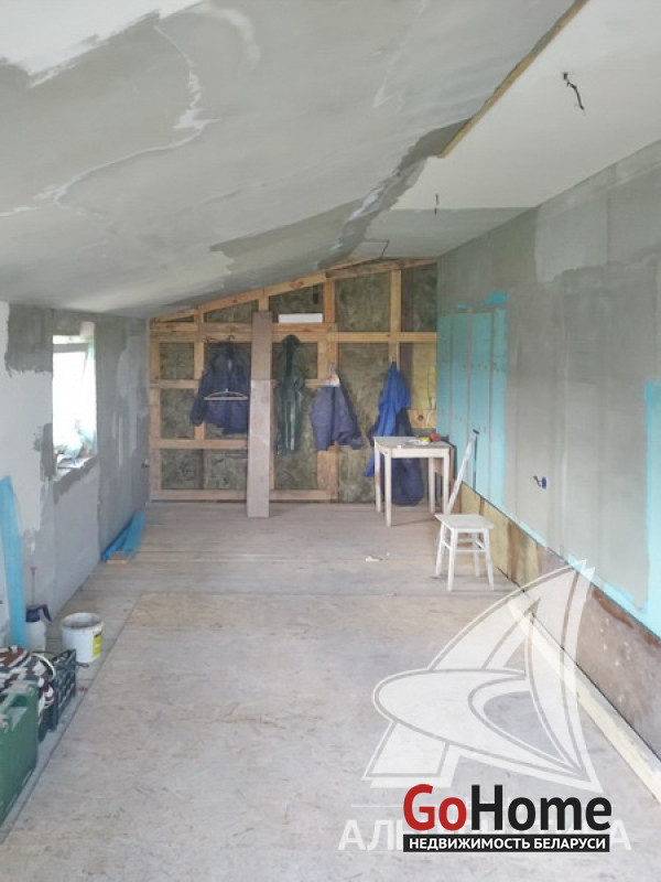 Коробка дачного домика жилого типа в черте г.Бресте. 2012 г.п. 1 этаж, мансарда. Общ.- 62,0 кв.м. 2 комнаты.