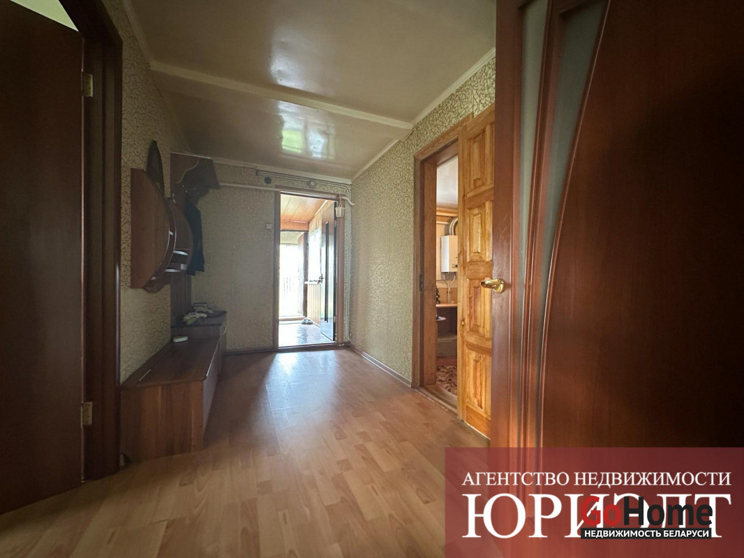 Продается дом, в ближайшем пригороде Бреста. Стены из строительного бруса, фасад обшит виниловым кирпичом, кровля - шифер. Общая площадь 94.7 кв.м, жилая 54.2кв.м. В соответствии с планировкой в доме смежные жилые комнаты, есть кухня и ванная комната. Помещения в аккуратном жилом состоянии обставлены мебелью, в кухне – встроенный гарнитур с бытовой техникой. Полы – линолеум и плитка, комбинированные потолки, стены оклеены обоями, в кухне – облицованы современной керамической плиткой. Установлена необходимая сантехника, душевая кабина.