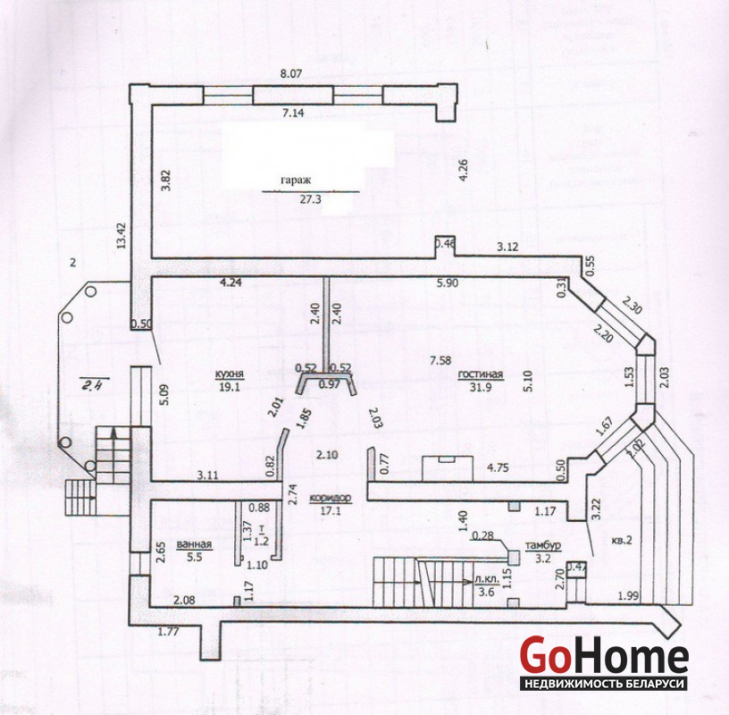 Есть гараж площадью 27,3 м². При продаже остаётся вся мебель.