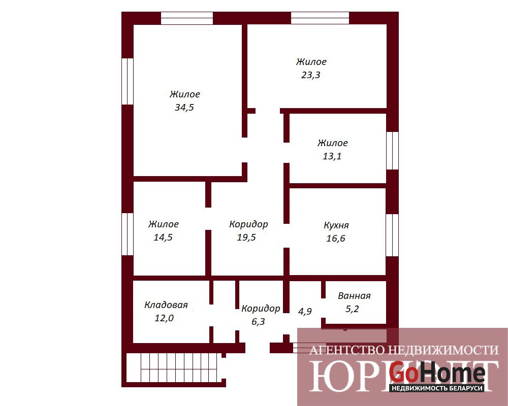 Дом построен в 2003 году из газосиликатных блоков, обложен кирпичом, крыша – шифер, фундамент бетонный. Введен в эксплуатацию. Общая площадь – 153 кв.м., жилая – 85.4 кв.м., кухня – 16.6 кв.м. По плану четыре жилые комнаты, кухня, кладовая, просторный холл, санузел и котельная. Имеется погреб, блочный сарай с примыкающим к нему гаражом.