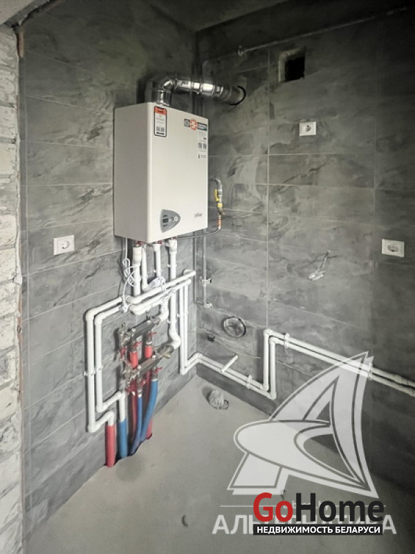 Коммуникации: отопление - газовый котел, газ - централизованный (в доме), водоснабжение - централизованный водопровод, электричество - централизованное, канализация - централизованная.